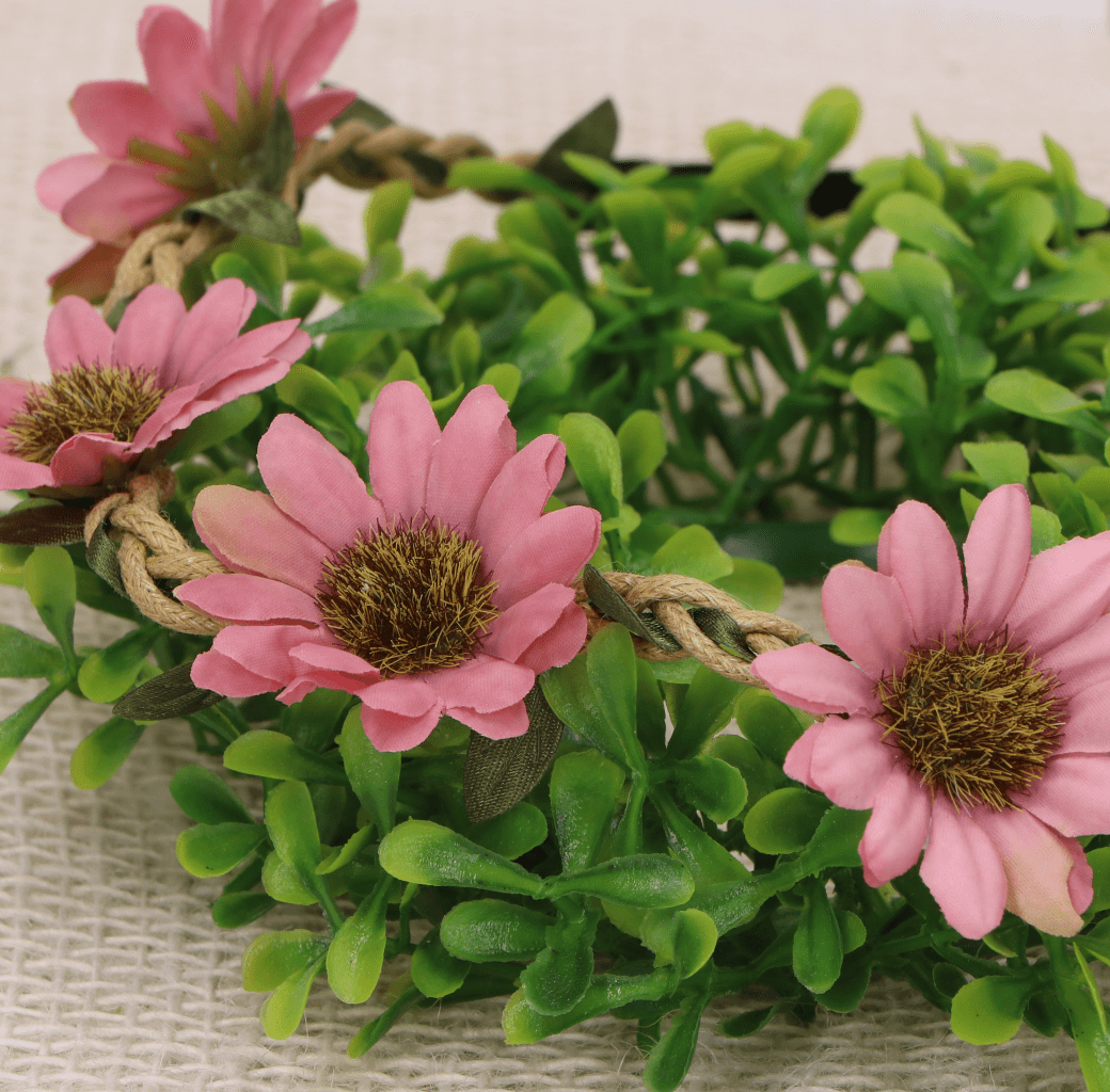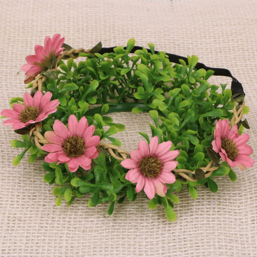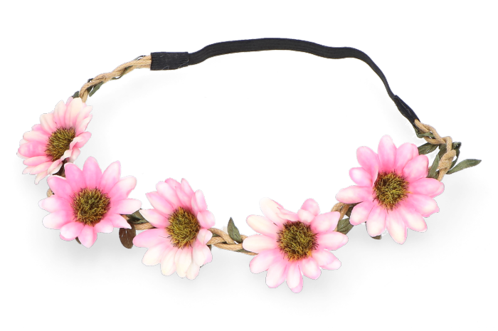 Opaska komunijna z jasnoróżowymi kwiatuszkami. Jasny kolor symbolizuje czystość i niewinność, a także odnowę życia duchowego.