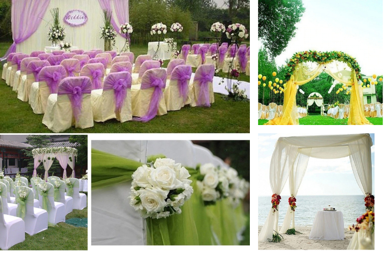 - Organzę wykorzystasz do dekoracji sali weselnych, komunijnych, urodzinowych itp. tworząc z nich wyjątkowe dekoracje na krzesła, ściany