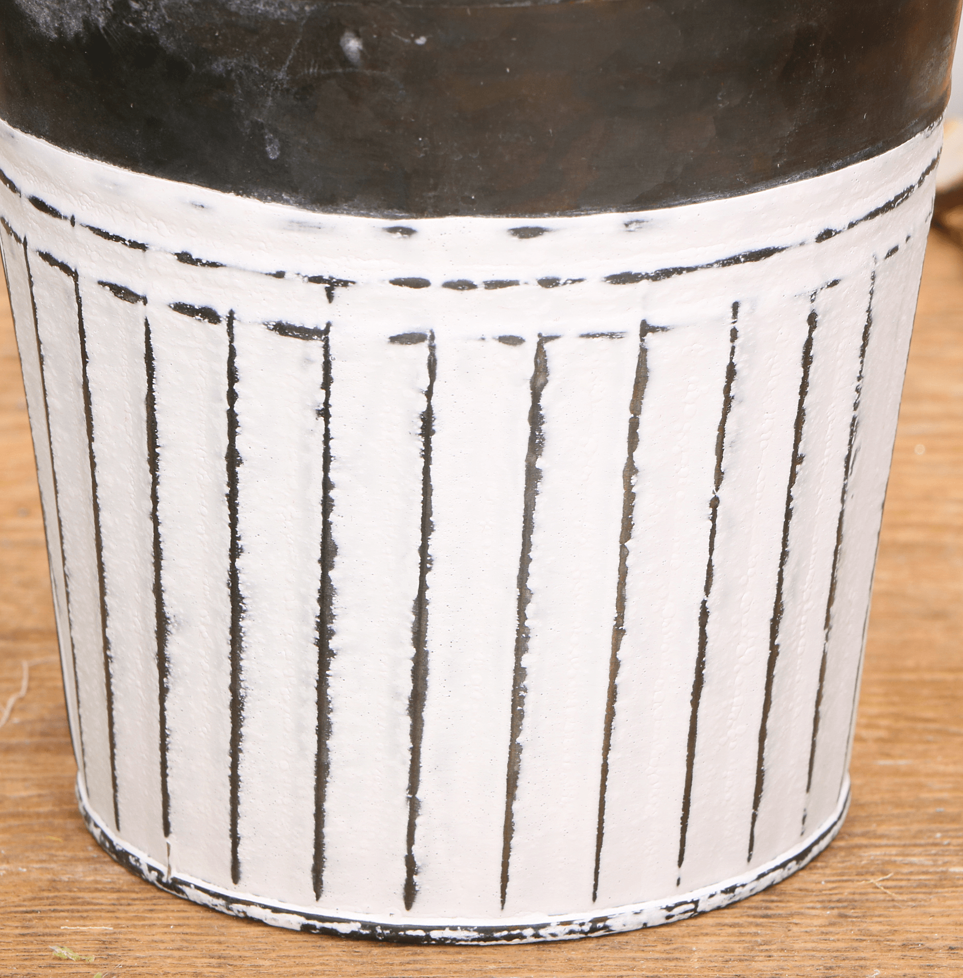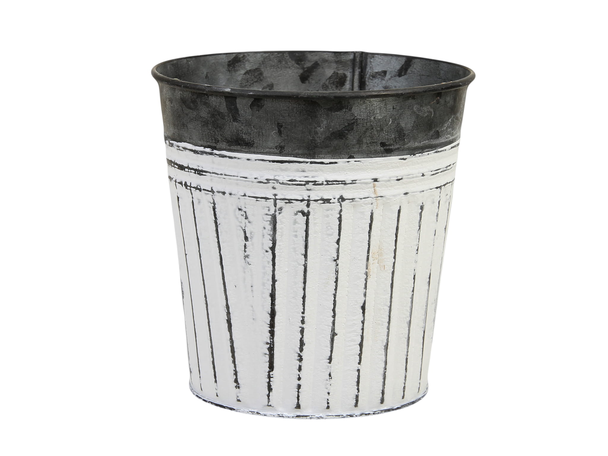 Osłonka doniczka metalowa szaro-biała w paski 10,5cm