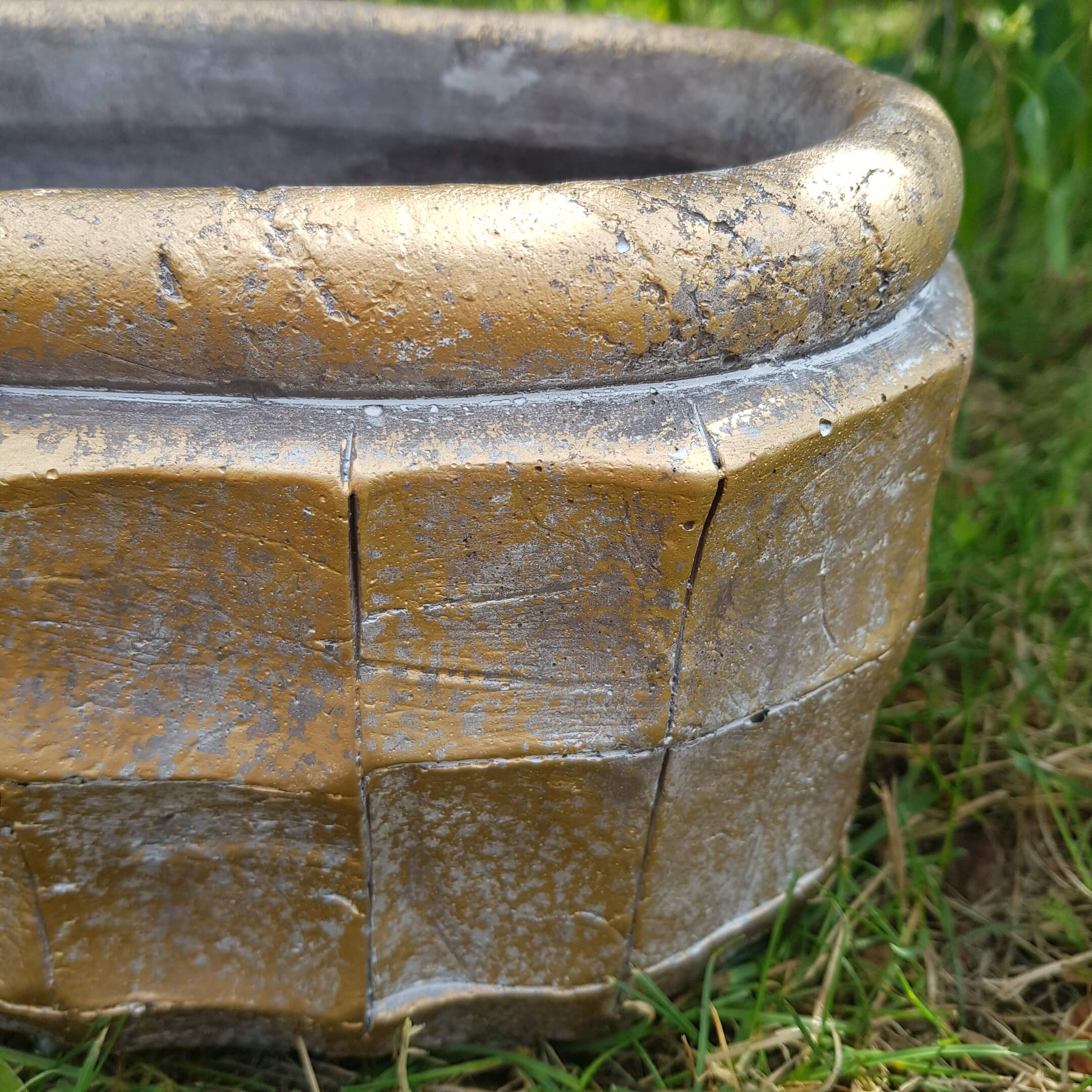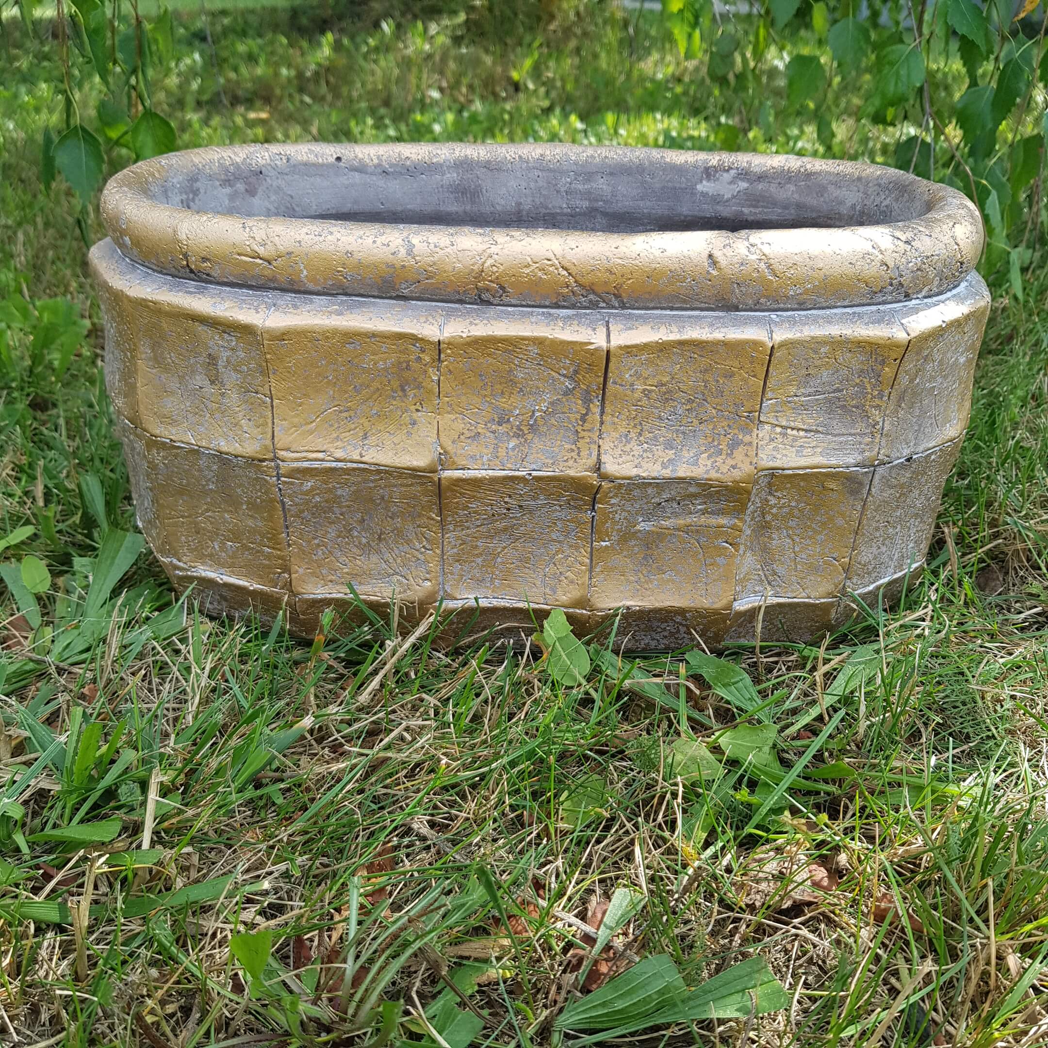 Osłonka kamienna złota owalna ścięte boki 14 cm