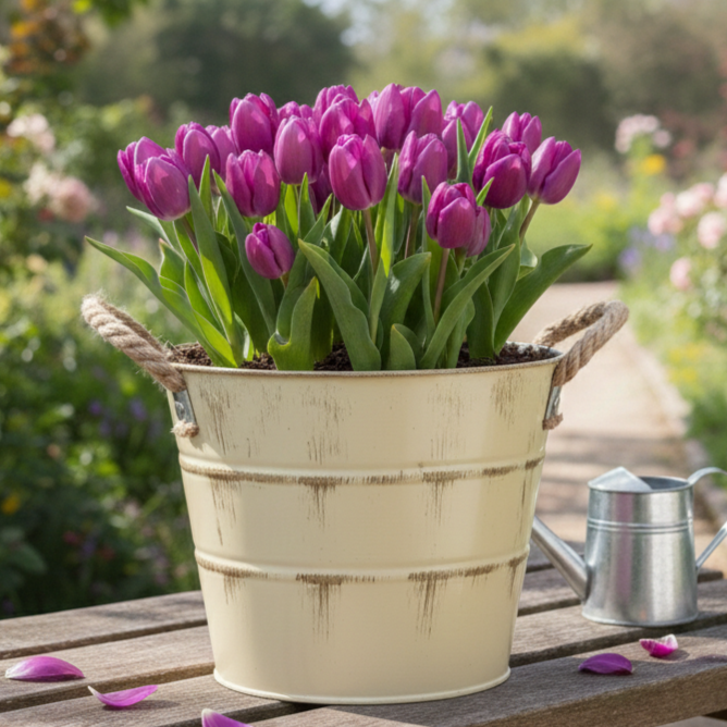 Osłonka metalowa z uchwytami ze sznura kremowa przecierana t:24 h:22 b:17 cm