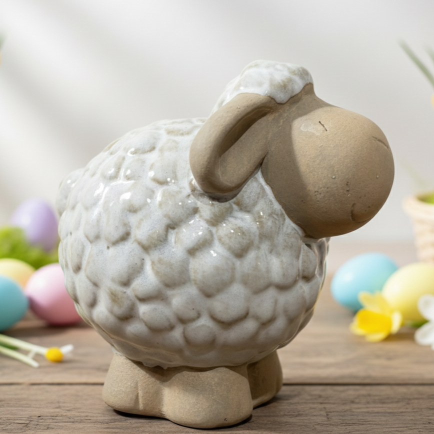 Owieczka ceramiczna, biała, szkliwiona 10,7*8*10,5 cm