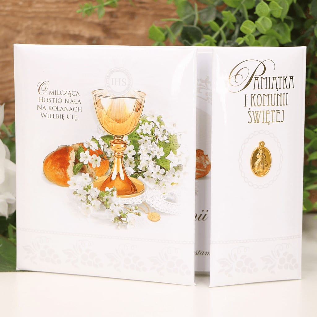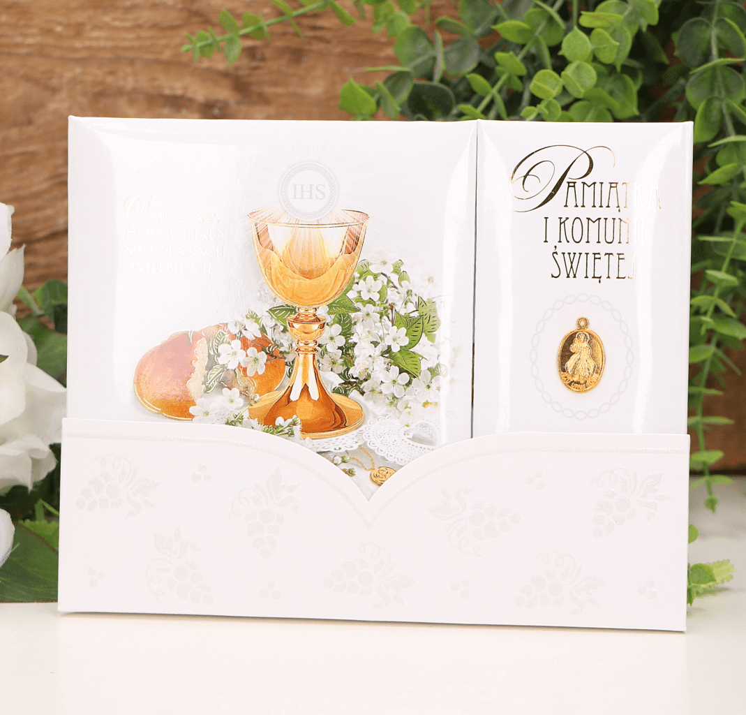 Pamiątka Komunijna z medlikiem Hostia biała