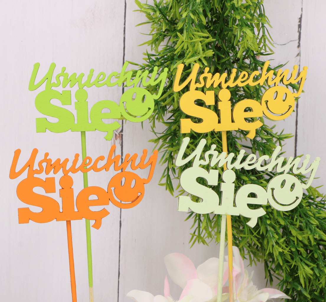 - Doniczka z kwiatami otrzyma sporo uroku, gdy dołożymy do niej ozdobny patyczek z napisem