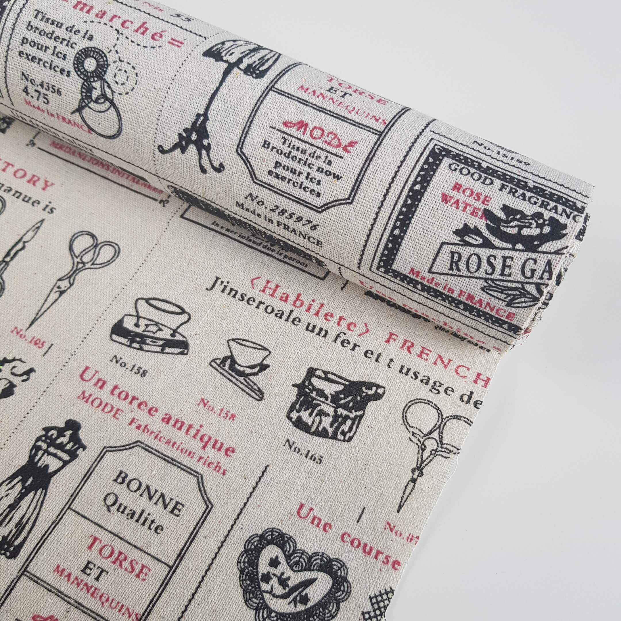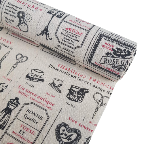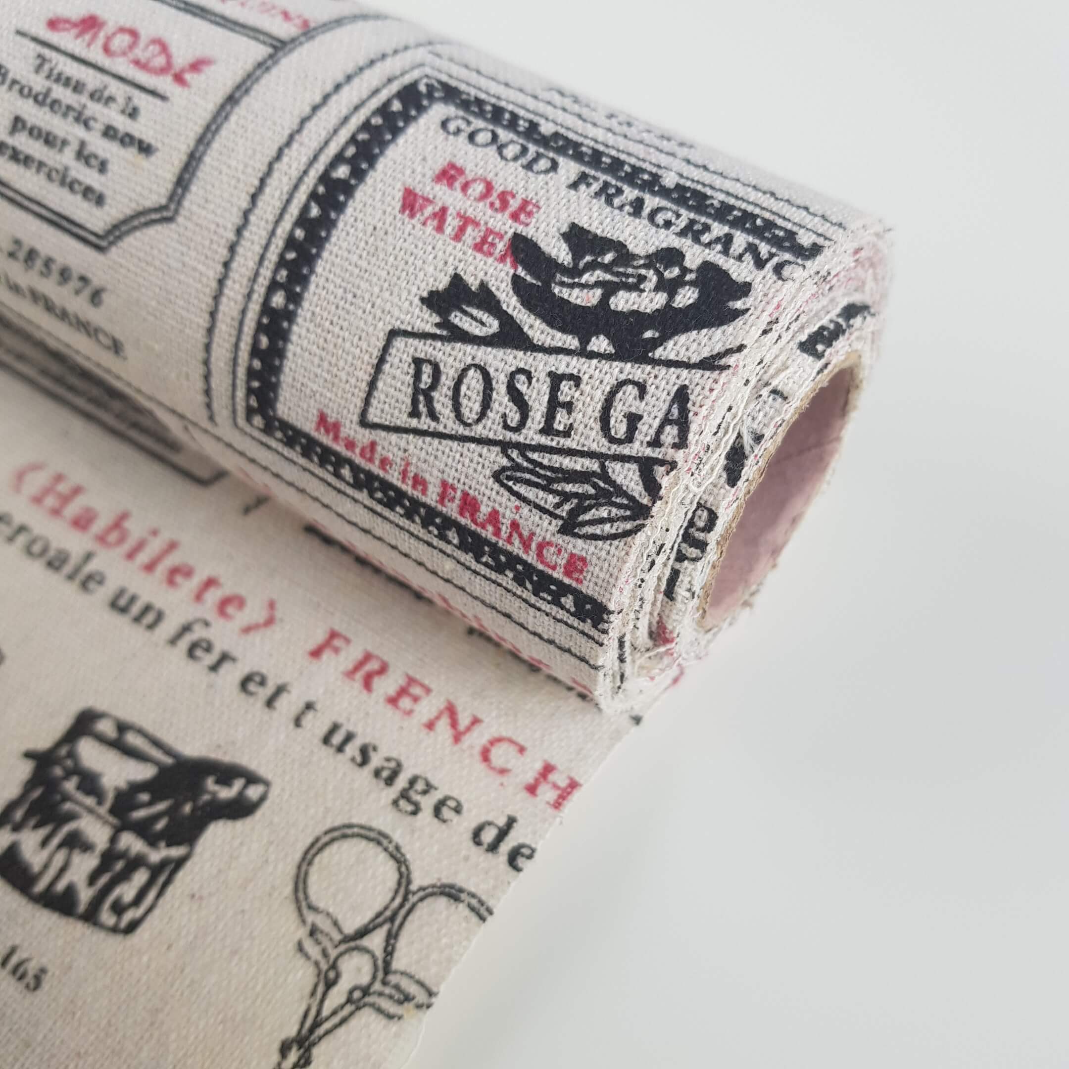 Płótno lniane materiał napisy z różą 48cm 4,5m