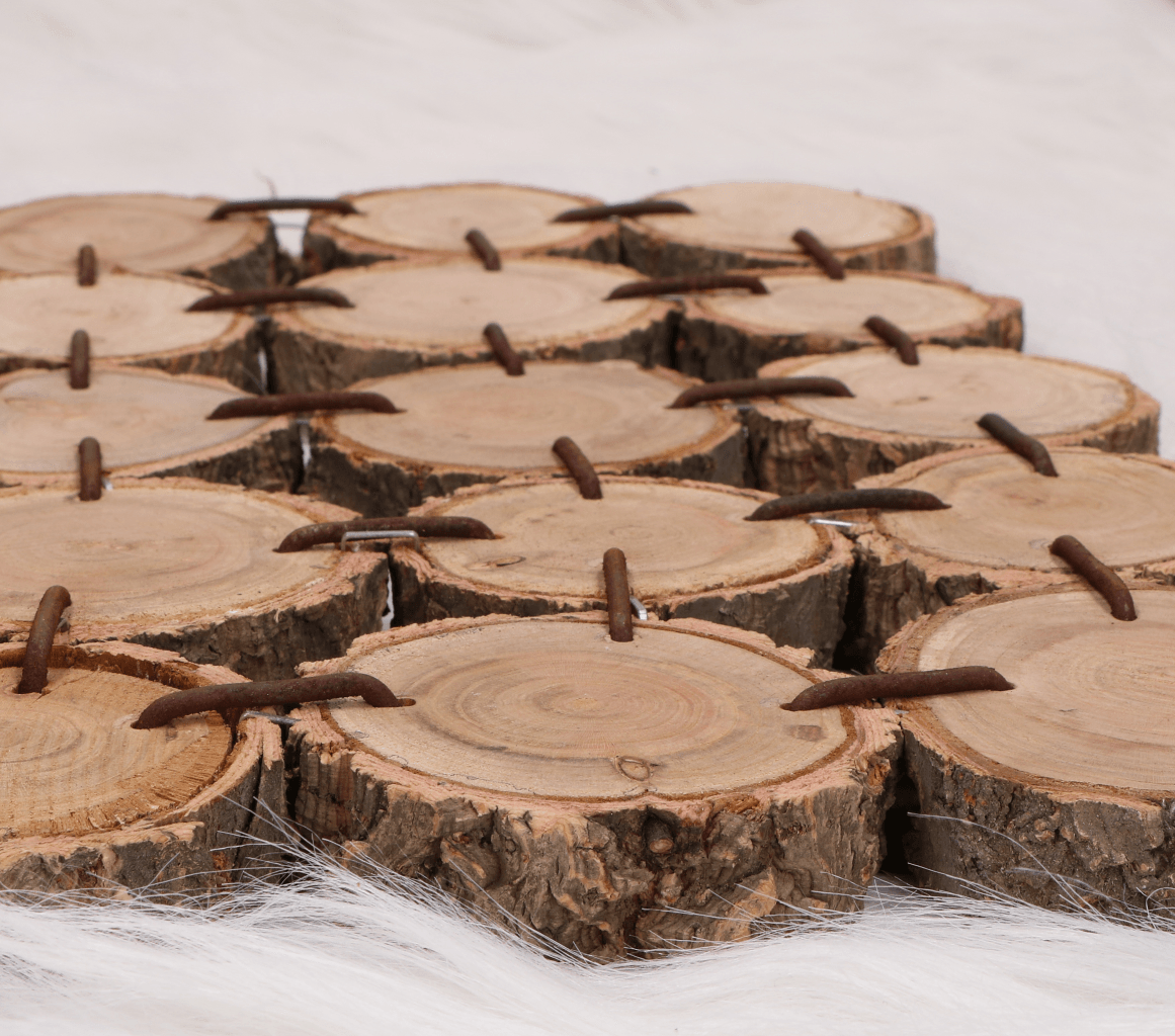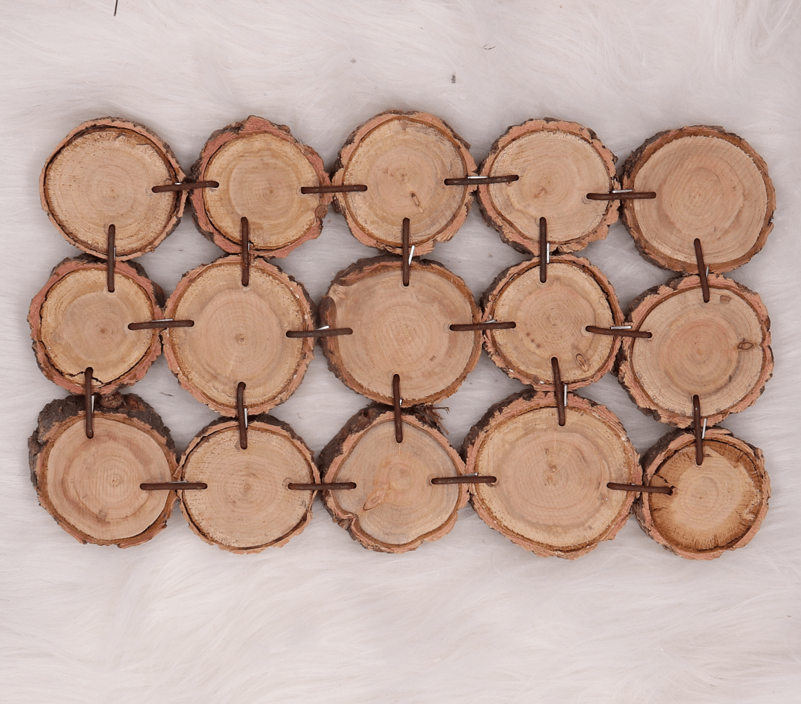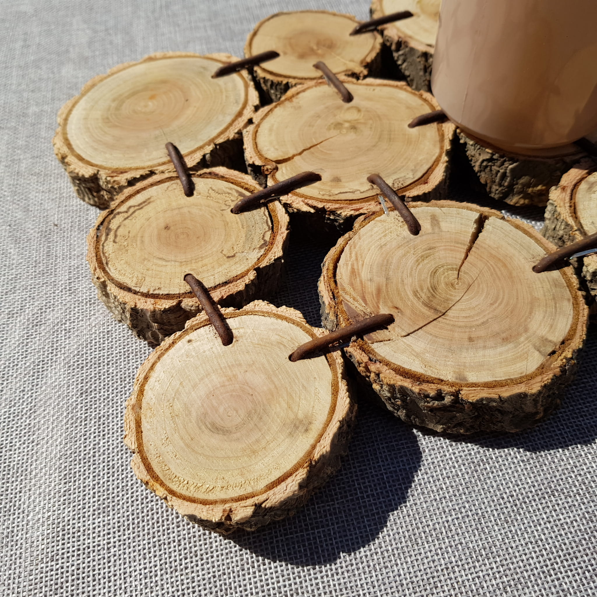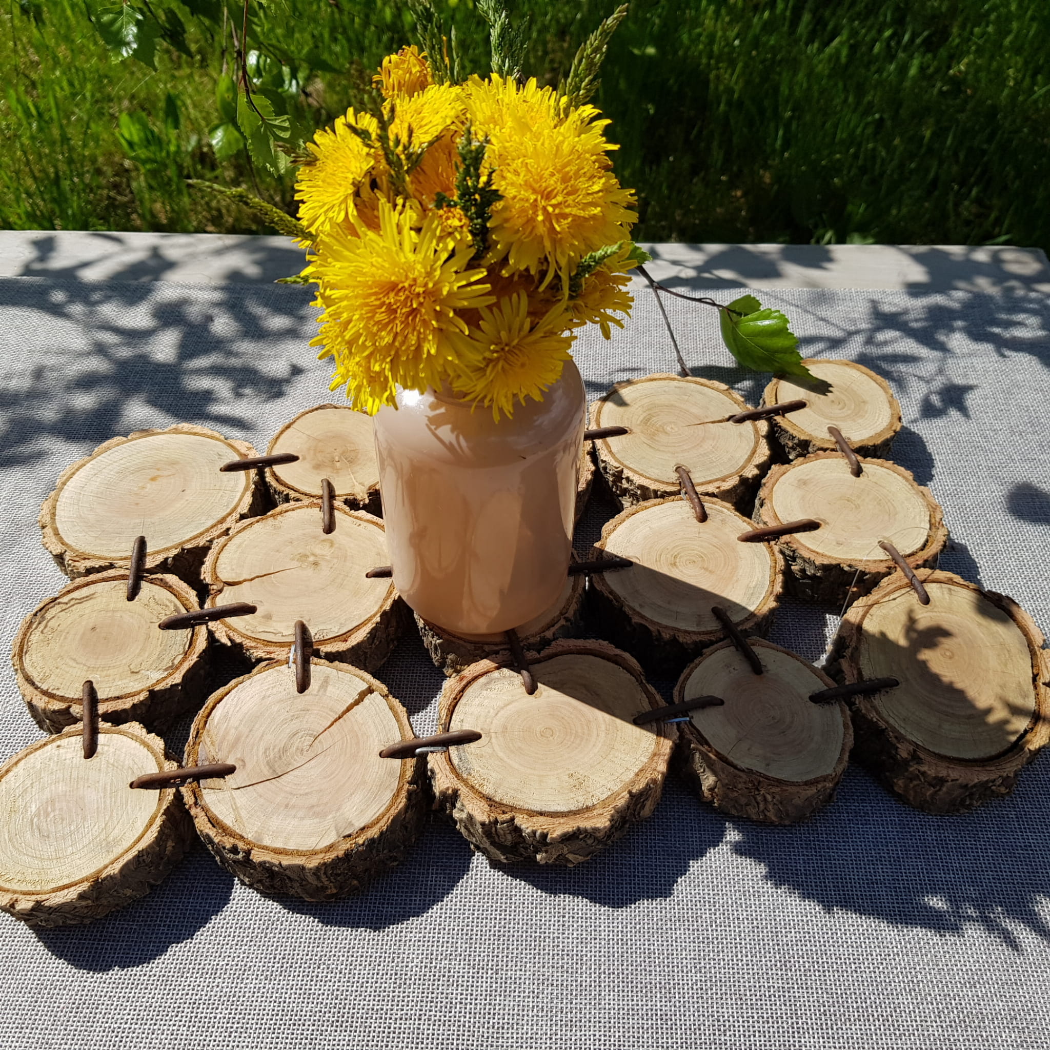 - Drewienka połączone są metalowymi drutami, co sprawia, że podstawka jest bardzo stabilna