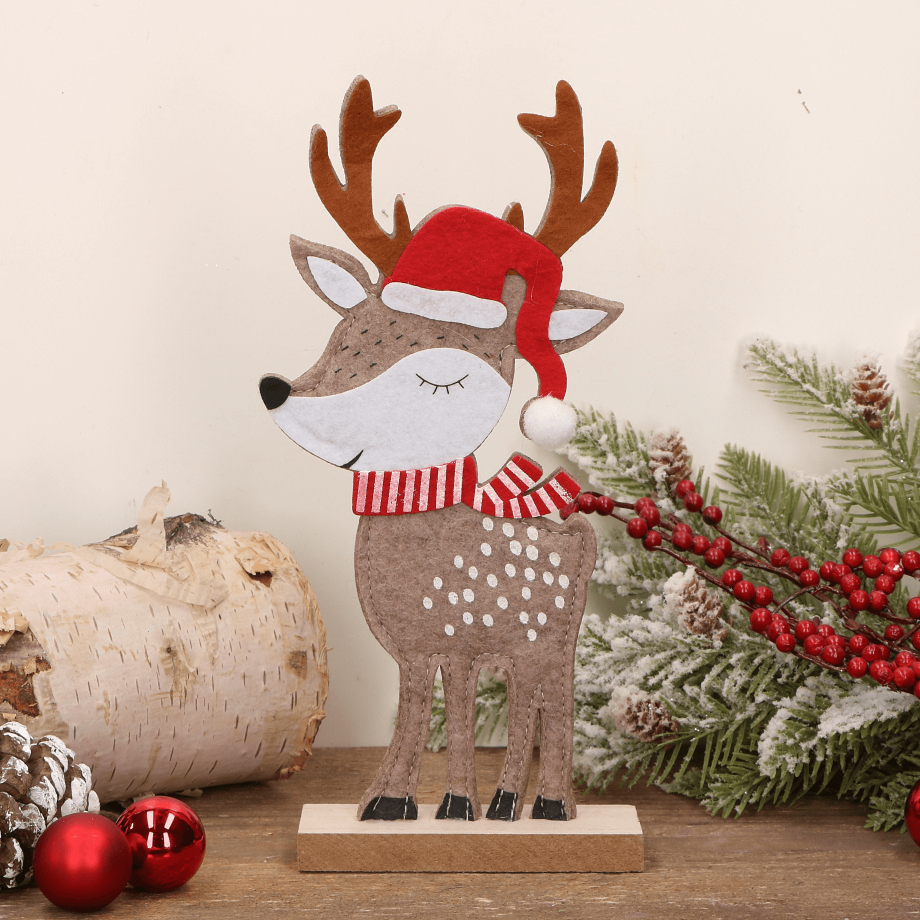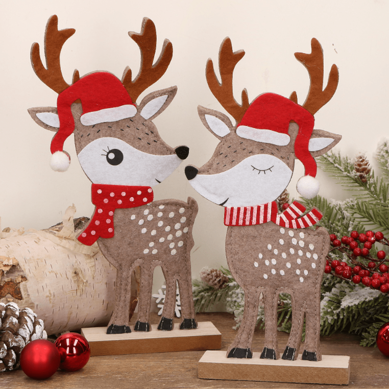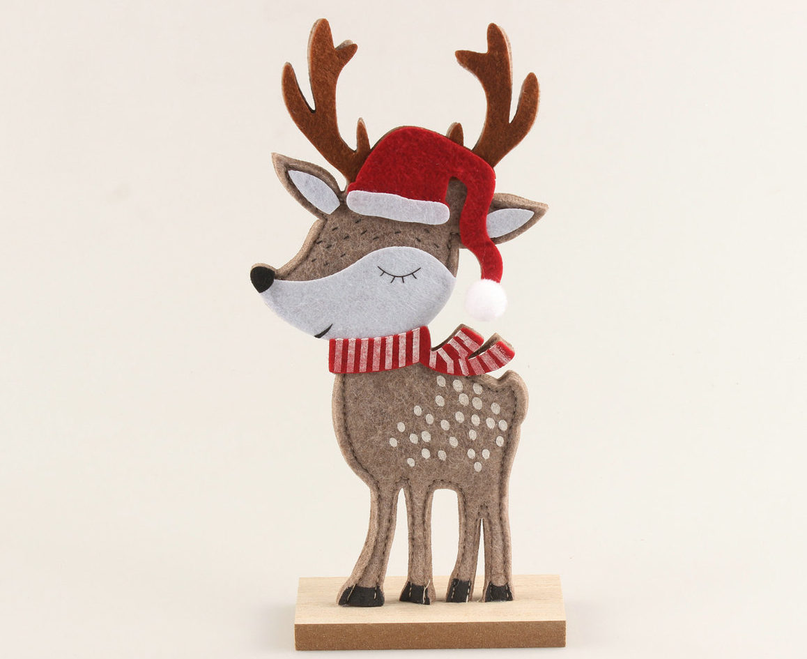 Uroczy stojący renifer z filcu to idealna dekoracja świąteczna, która wprowadzi radosną atmosferę do każdego wnętrza. Renifer jest wyposażony w czerwoną czapkę Mikołaja oraz szalik, co dodaje mu świątecznego uroku. Starannie wykonany z wysokiej jakości filcu, zapewnia trwałość i estetykę na długie lata. Stabilna podstawa sprawia, że renifer jest idealny do ustawienia na kominku, półce czy świątecznym stole. To doskonały wybór na świąteczny prezent lub jako ozdoba, która doda magii Twoim świętom.
