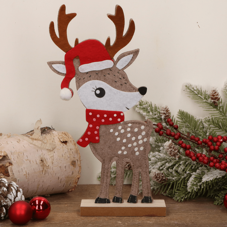 Uroczy stojący renifer z filcu to idealna dekoracja świąteczna, która wprowadzi radosną atmosferę do każdego wnętrza. Renifer jest wyposażony w czerwoną czapkę Mikołaja oraz szalik, co dodaje mu świątecznego uroku. Starannie wykonany z wysokiej jakości filcu, zapewnia trwałość i estetykę na długie lata. Stabilna podstawa sprawia, że renifer jest idealny do ustawienia na kominku, półce czy świątecznym stole. To doskonały wybór na świąteczny prezent lub jako ozdoba, która doda magii Twoim świętom.