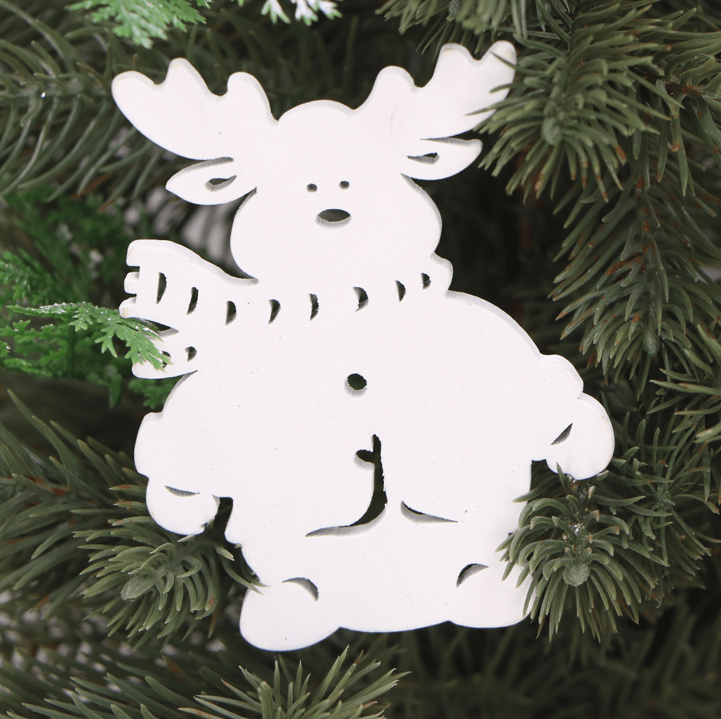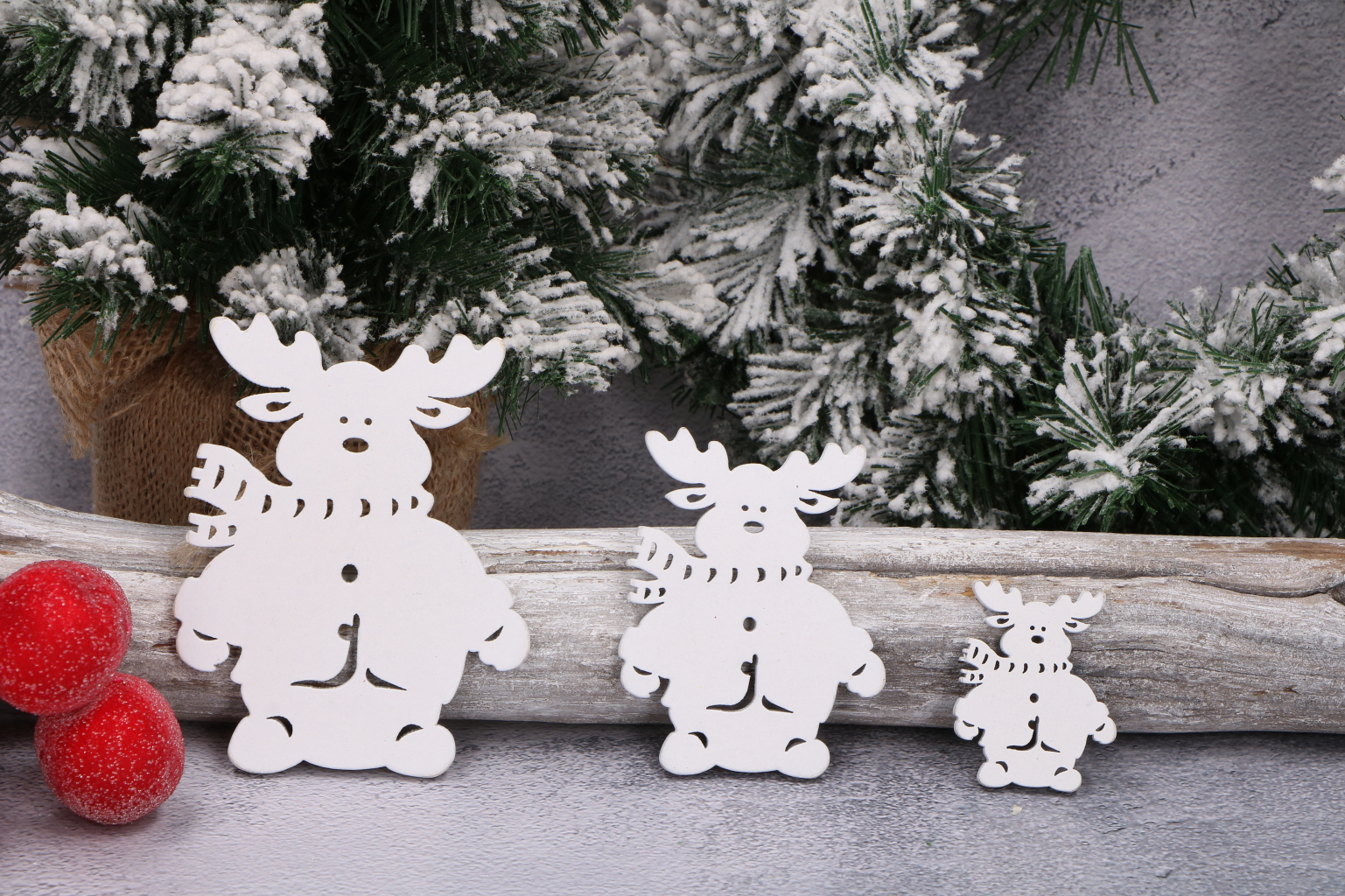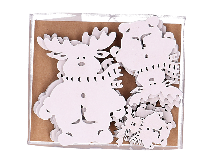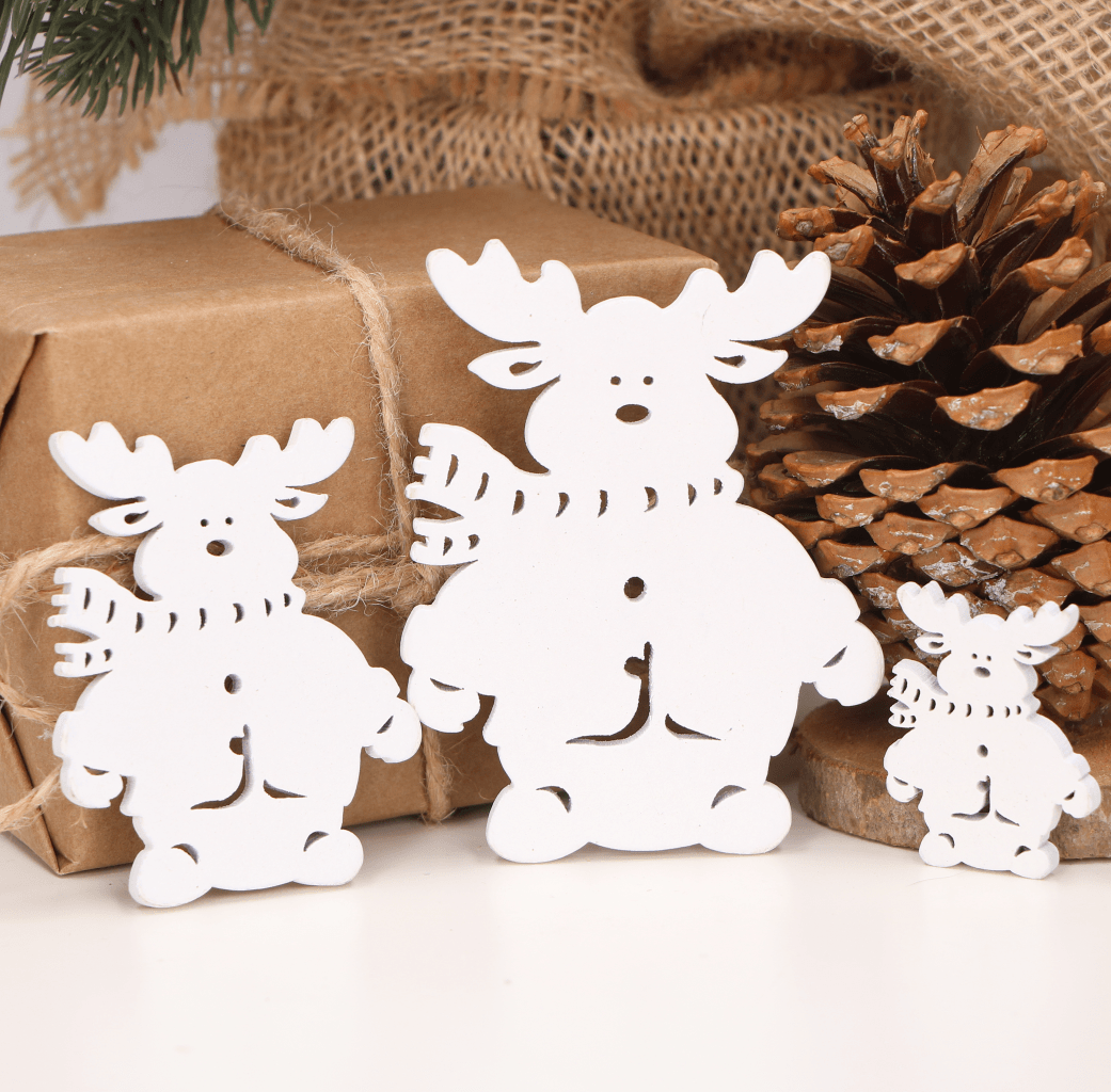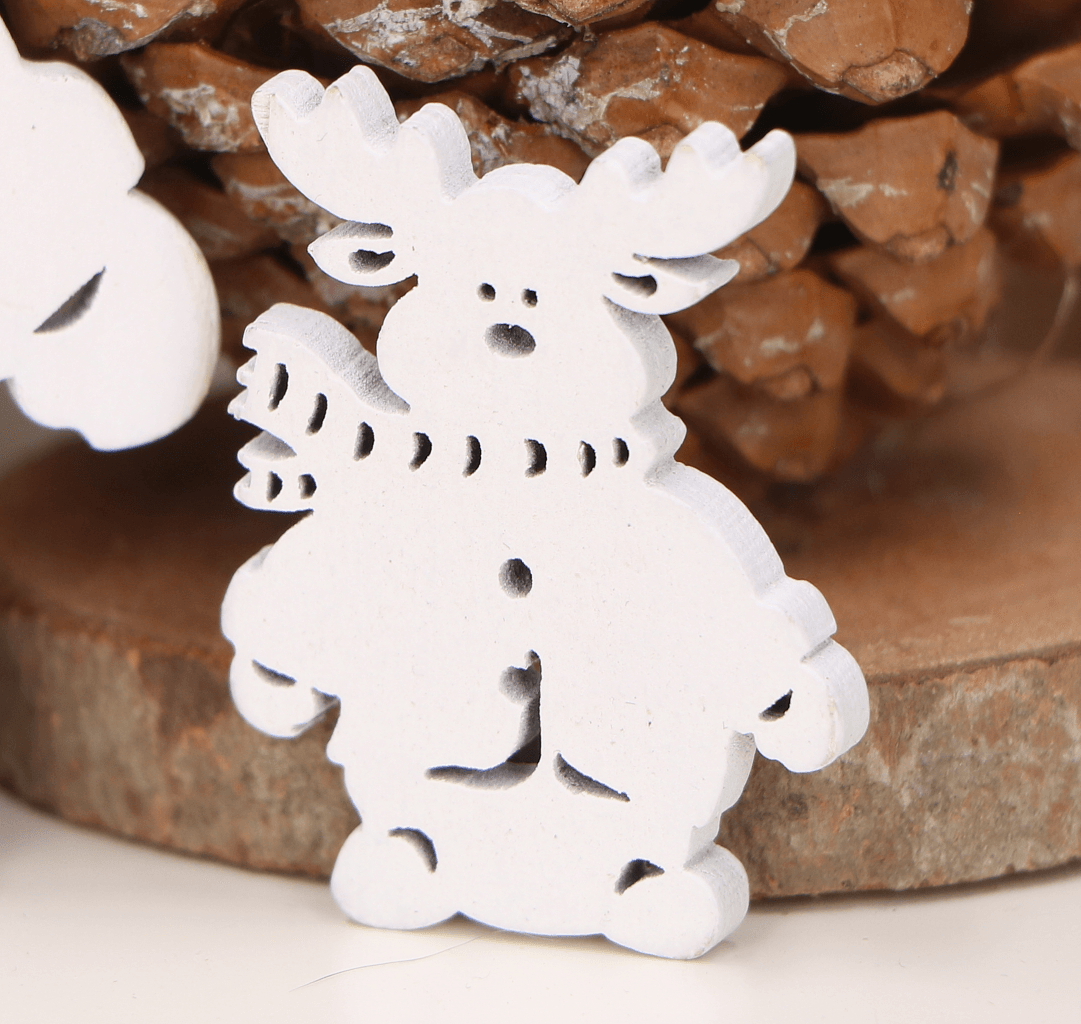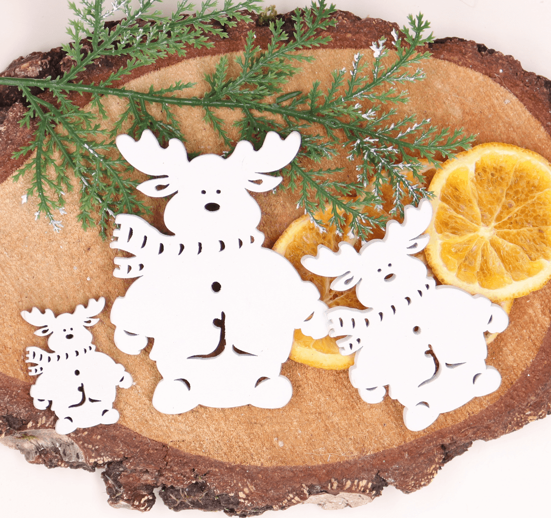 Reniferki Zawieszki Ozdobne Drewniane Białe 12 sztuk