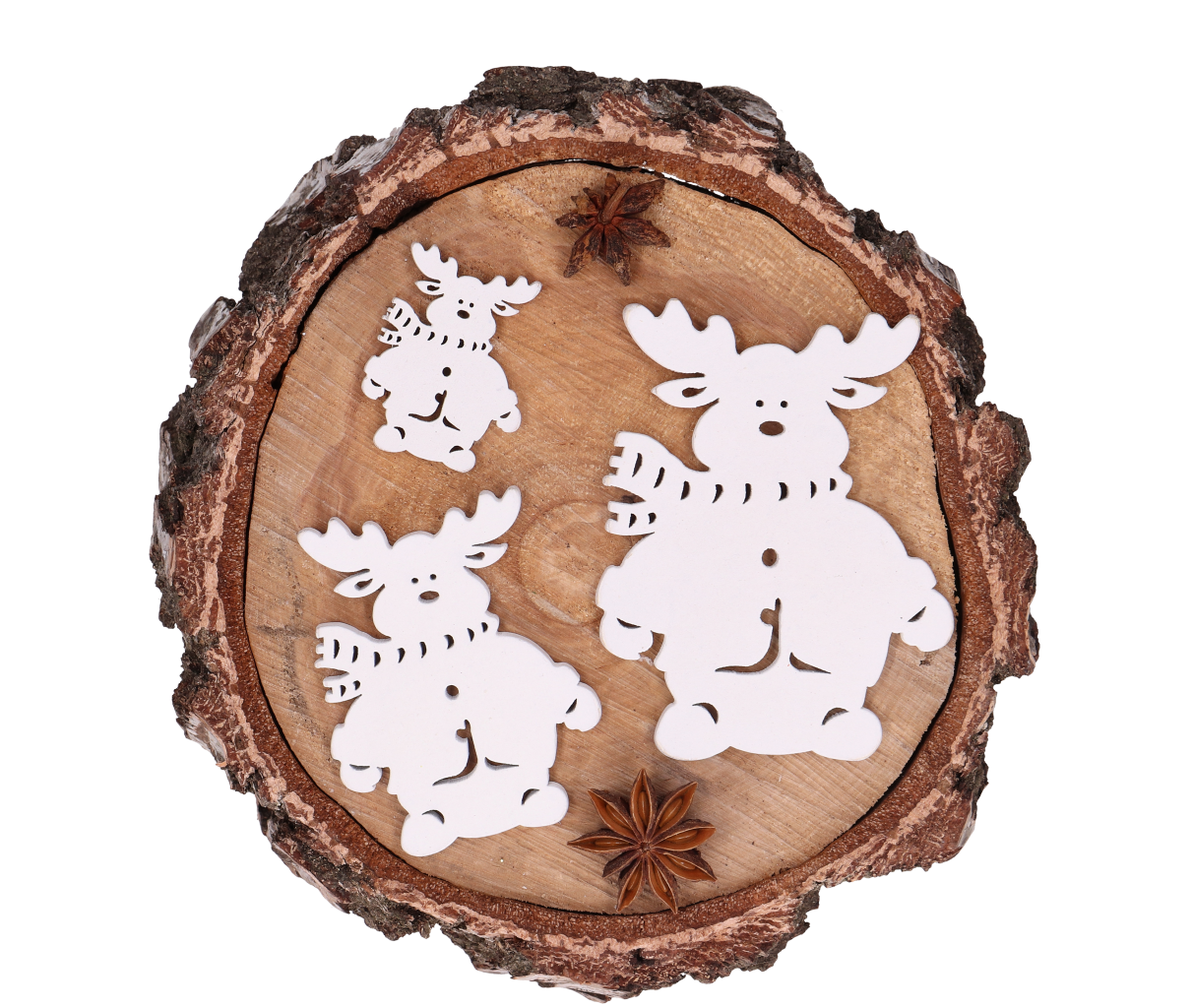 Piękne i urocze reniferki drewniane są idealną ozdobą, którą można powiesić na zieloną choinkę. Na pewno każdy domownik, jak i goście, zwrócą uwagę podczas świątecznych spotkań na tę wyjątkową dekorację. W świątecznym czasie, gdy lubimy robić zdjęcia swoich choinek i wysyłać je do rodziny wraz z życzeniami, warto zaopatrzyć się w taką dekorację, a na pewno odmieni ona oblicze każdej choinki. Dzięki trzem wielkościom zawieszek, można użyć je na różne sposoby począwszy od zdobienia własnoręcznie wykonanych bożonarodzeniowych kartek po sporych rozmiarów dekoracje okienne czy stołowe.