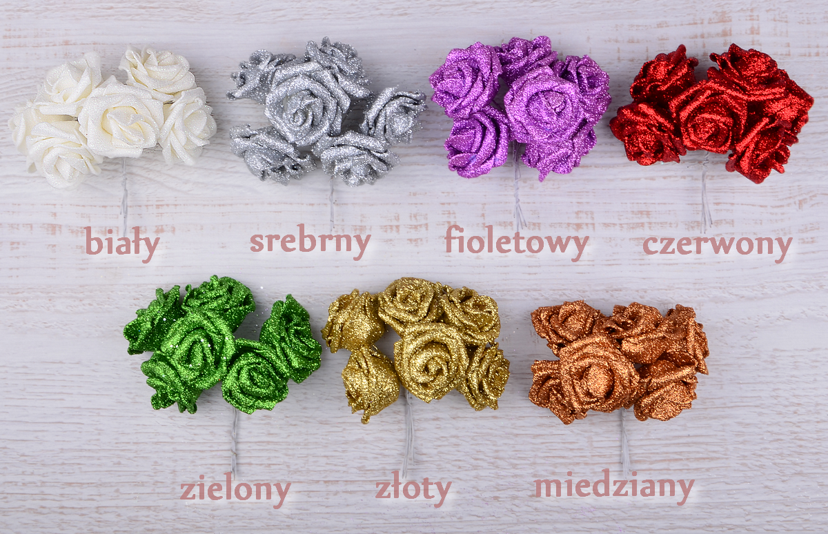 Różyczki brokatowe w kolorze fioletowym.