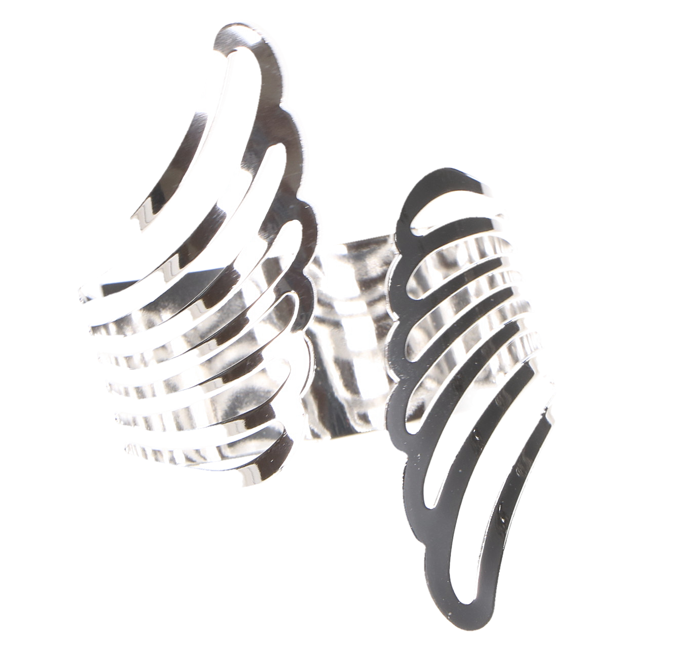 Nowoczesny serwetnik dekoracyjny w kolorze srebrnym to stylowy dodatek, który podkreśli wyjątkowy charakter każdej aranżacji stołu. Oryginalny, ażurowy wzór nadaje mu lekkości i elegancji, a połyskujące wykończenie pięknie odbija światło. Ten pierścień na serwetę doskonale sprawdzi się podczas świąt, wesel, przyjęć okolicznościowych oraz eleganckich kolacji rodzinnych. Srebrna kolorystyka idealnie komponuje się zarówno z klasyczną bielą, jak i bardziej wyrazistymi dekoracjami stołu. To praktyczny i efektowny element, który pozwala estetycznie ułożyć serwety, jednocześnie dodając nakryciu stołu szyku i harmonii.