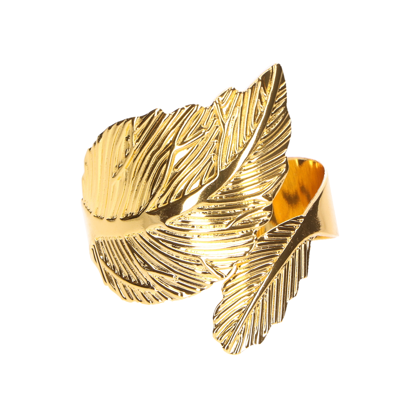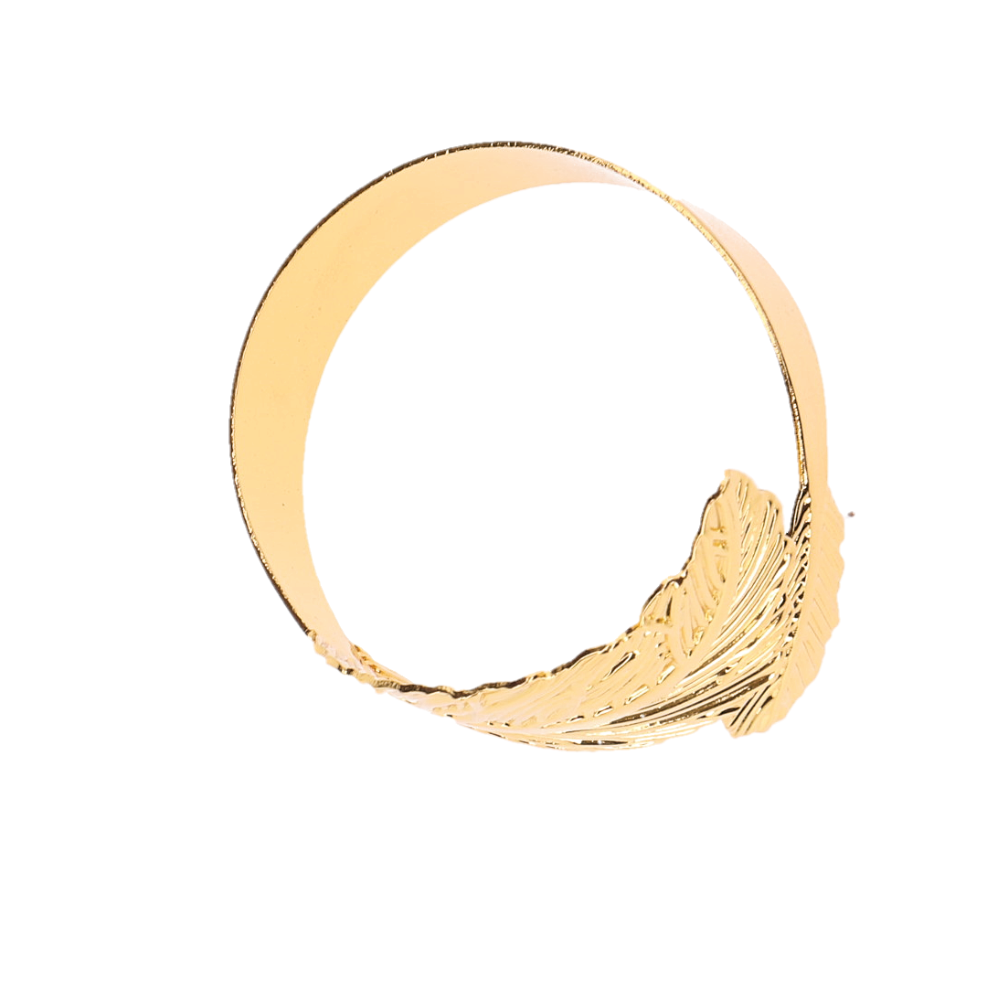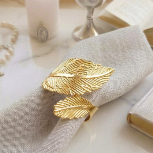 Elegancki serwetnik w formie złotego pierścienia dekoracyjnego to stylowy dodatek, który podkreśli wyjątkowy charakter każdej aranżacji stołu. Wykonany z metalu w połyskującym, złotym kolorze, zachwyca efektownym wzorem liści, nadając nakryciu stołu luksusowy i nowoczesny wygląd. Idealnie sprawdzi się podczas przyjęć, wesel, świąt oraz uroczystych kolacji. Dekoracyjny pierścień na serwetki pięknie eksponuje materiałowe i papierowe serwetki, dodając elegancji całej kompozycji. To doskonały wybór dla osób ceniących styl glamour, klasyczne złote dodatki oraz starannie dopracowane detale. Dzięki solidnemu wykonaniu serwetnik jest trwały i wielokrotnego użytku.