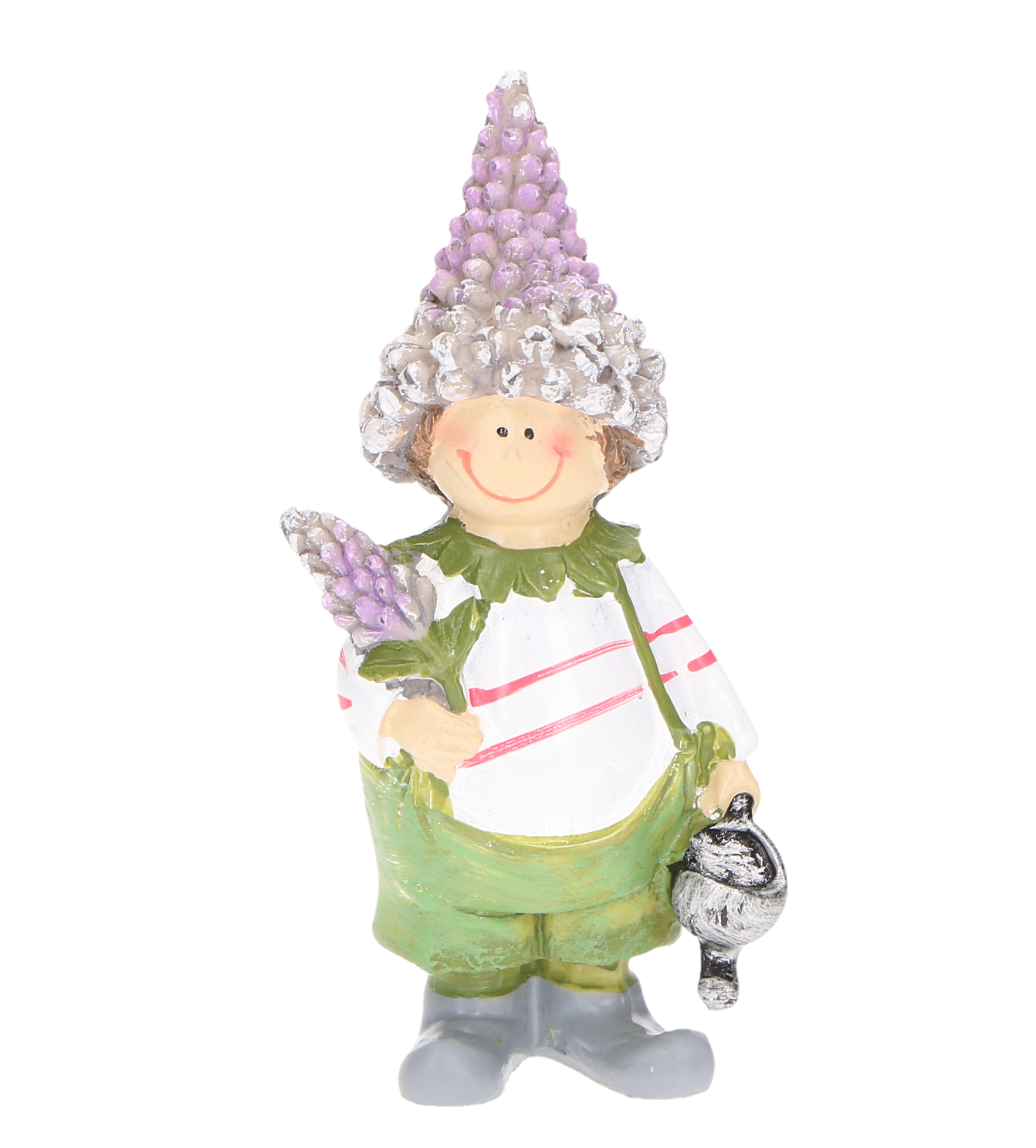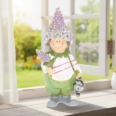Urocza ceramiczna figurka skrzat chłopiec to wyjątkowa dekoracja, która doskonale podkreśli wiosenny i wielkanocny klimat wnętrza. Postać z bukietem fioletowych kwiatów oraz niewielkim dzwoneczkiem zachwyca starannym wykonaniem i subtelną, pastelową kolorystyką. Charakterystyczna czapka w kształcie hiacyntu nadaje figurce oryginalny, sezonowy charakter. To idealna dekoracja wiosenna do domu, która świetnie sprawdzi się na parapecie, komodzie, półce czy jako element świątecznego stroika. Kompaktowy rozmiar sprawia, że skrzat doskonale komponuje się z innymi ozdobami, tworząc spójną i przytulną aranżację. Świetny pomysł na drobny upominek dla miłośników klimatycznych figurek ceramicznych.