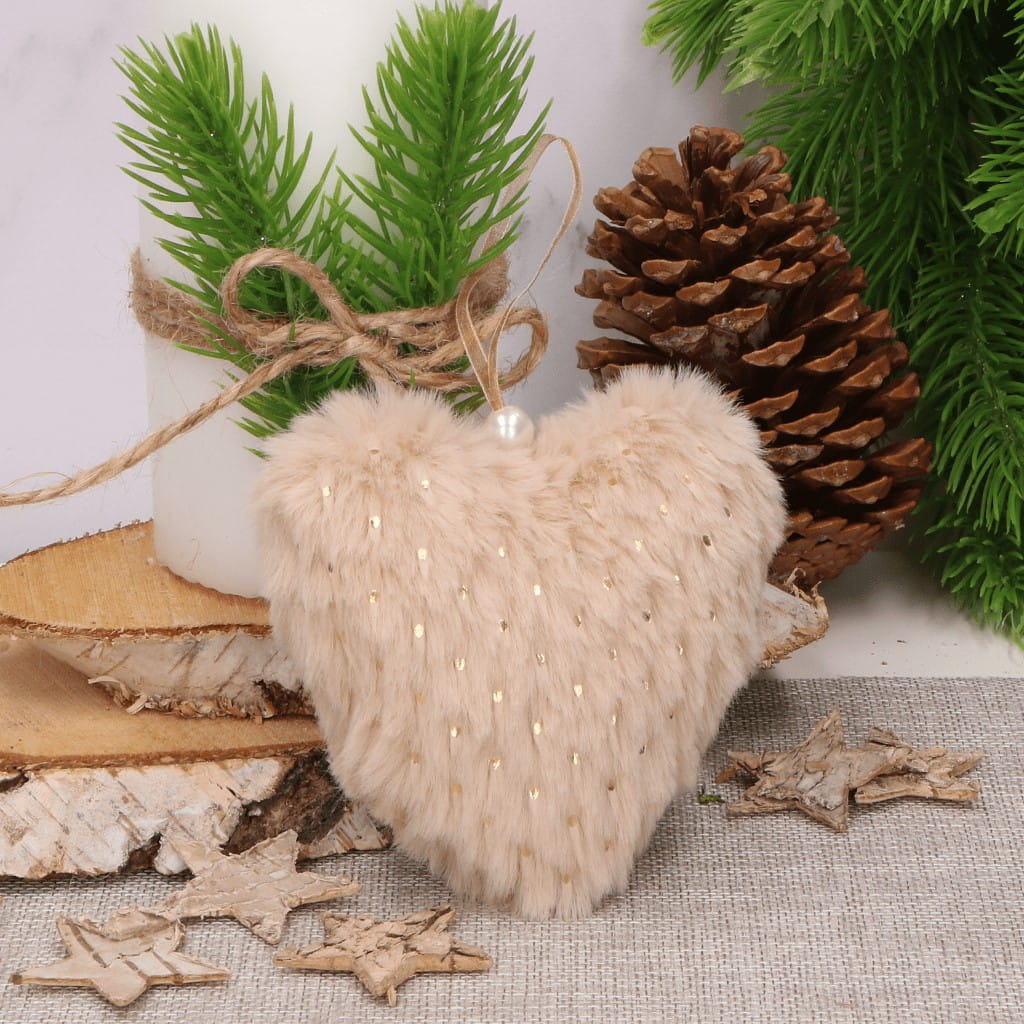 Futerkowa zawieszka bombka na choinkę serce kremowe