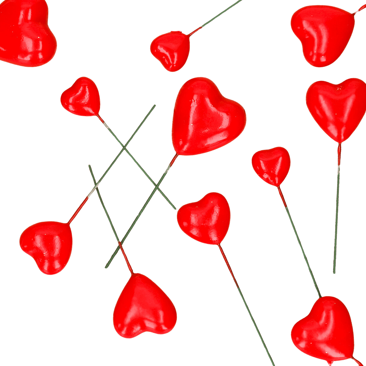 Serduszka na piku czerwone 20szt. mix rozmiarów- 2, 2.5, 3, 4cm