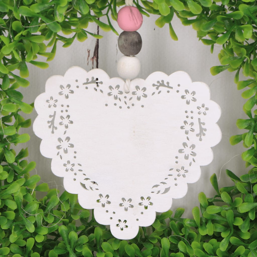 Serduszko zawieszka z koralikami białe 11cm