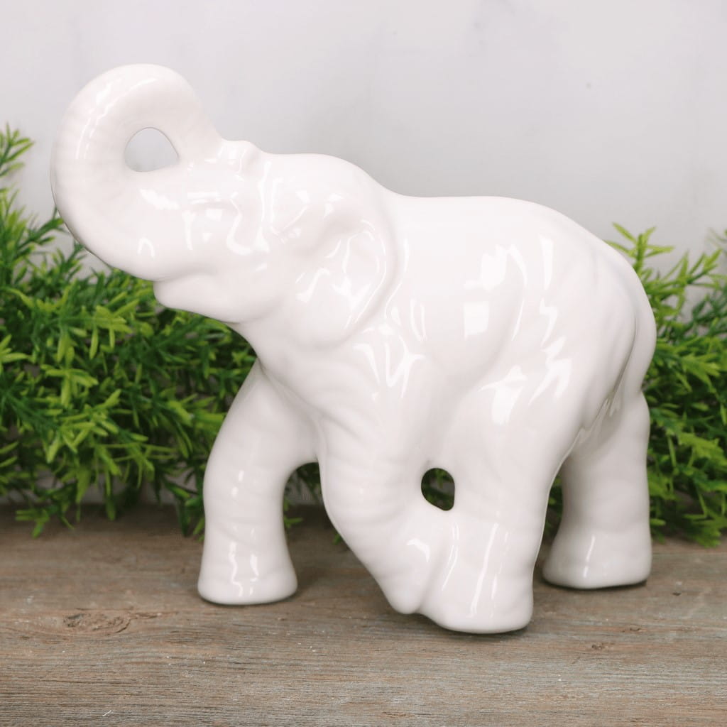 Słoń "biegnący średni" szkliwiony biały 15cm