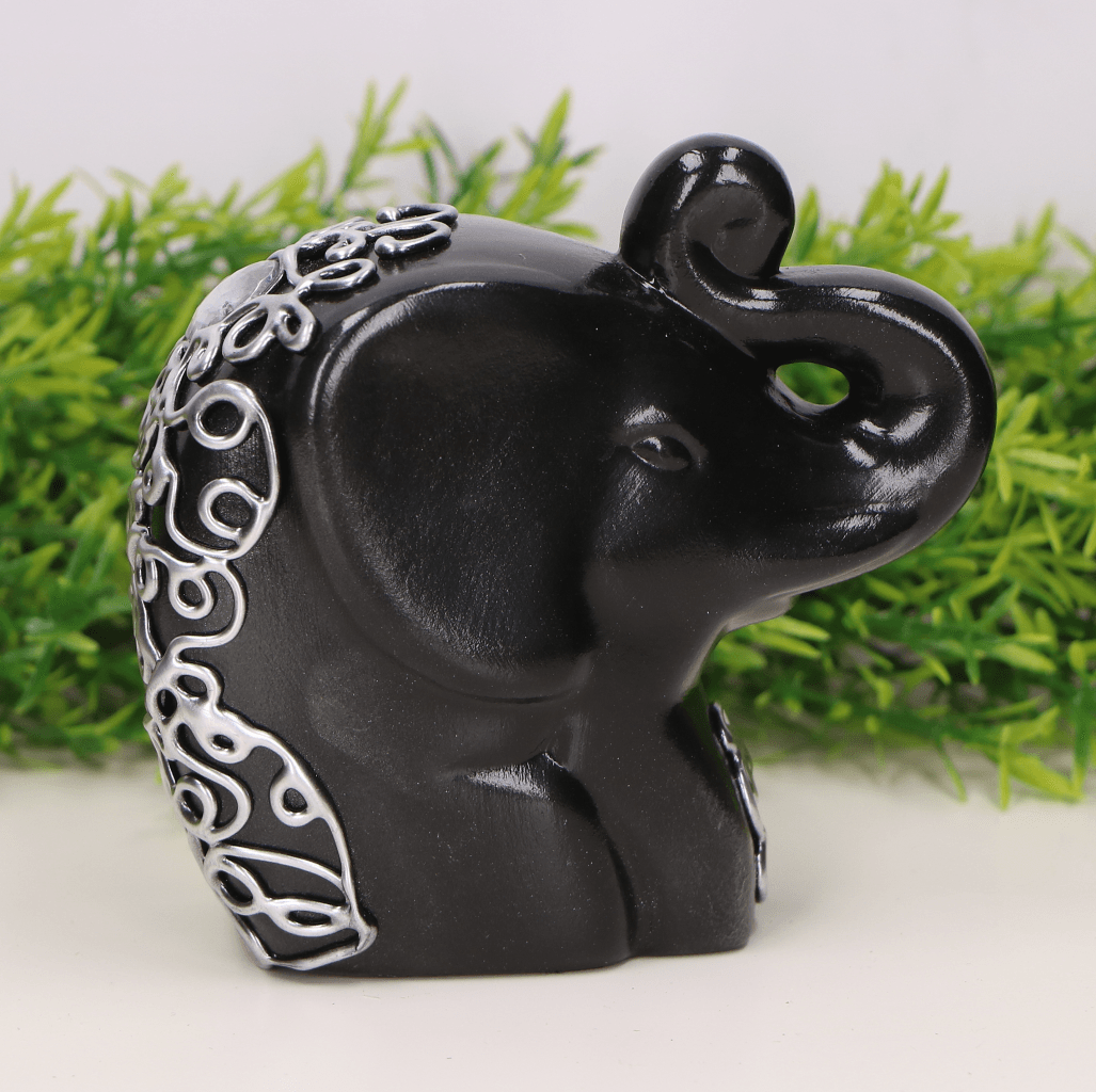 Słoń "gruby mini" ceramiczny dekorowany czarny 11cm