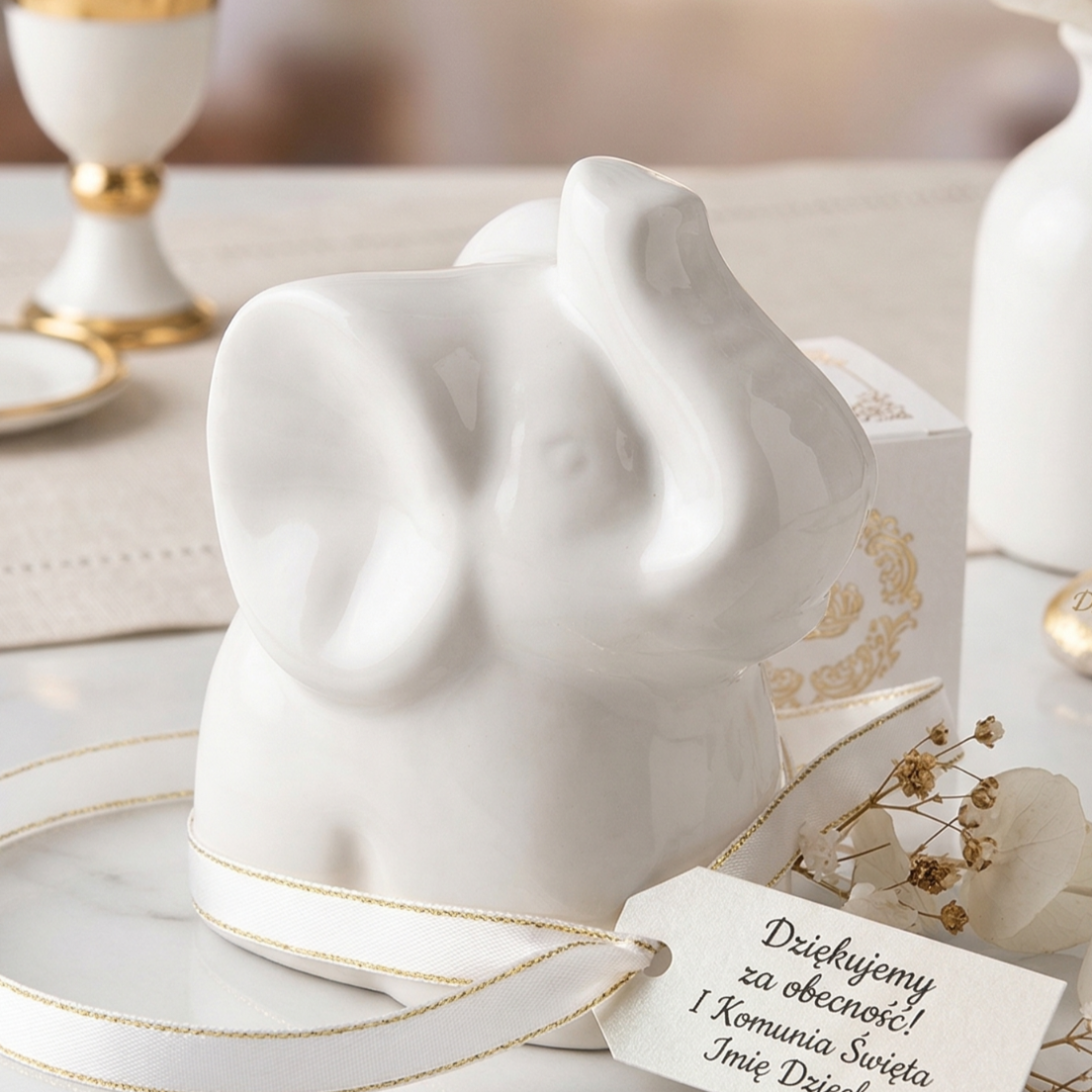 Malutkie słoniki to unikalna pamiątka, którą możesz wręczyć gościom weselnym, komunijnym czy na zakończenie roku szkolnego. Słoniki będą cudownie komponować się wśród mchu, tulipanów i innych kwiatów. Słoniki wyglądają pięknie w towarzystwie innych dekoracji i dodają wiele uroku do każdej kompozycji. Słonik może być przepiękną dekoracją na stół, jako ozdoba doniczkowa, na prezent.
