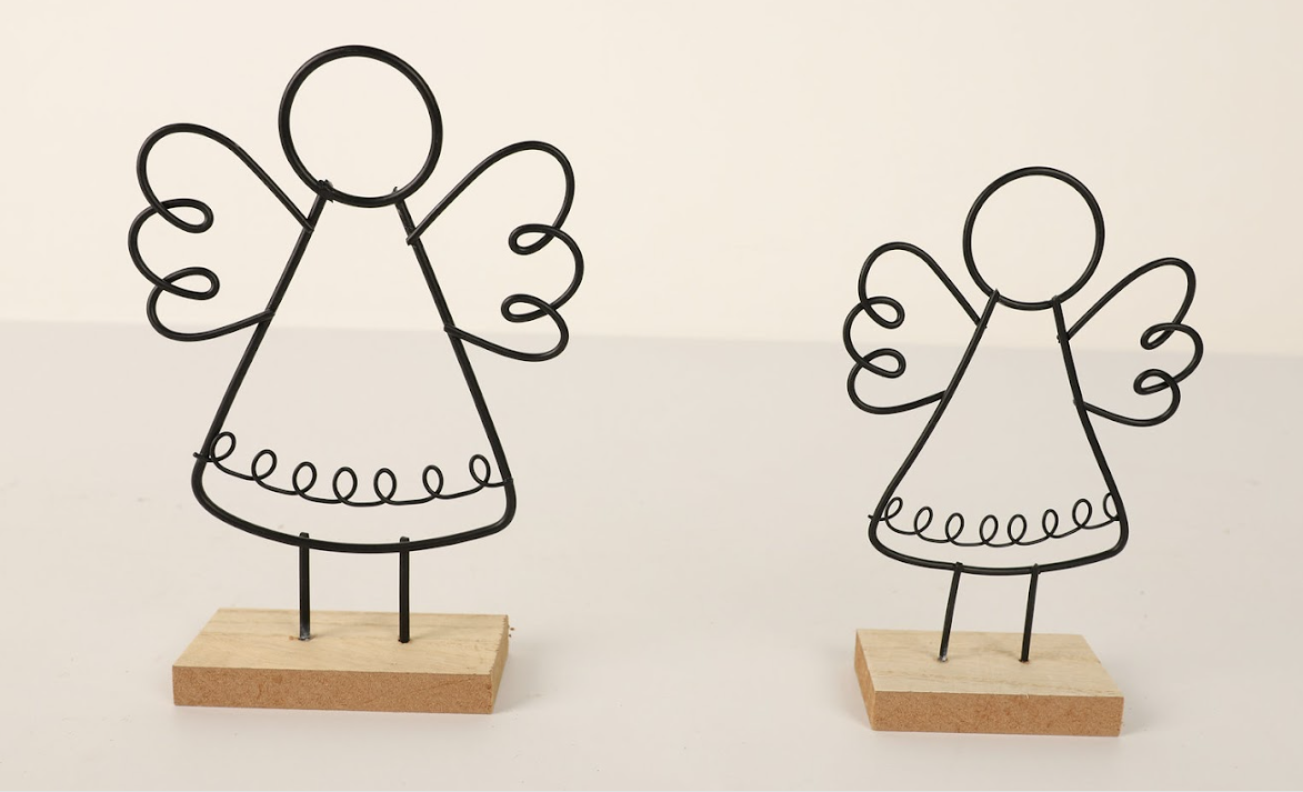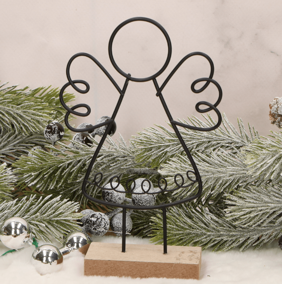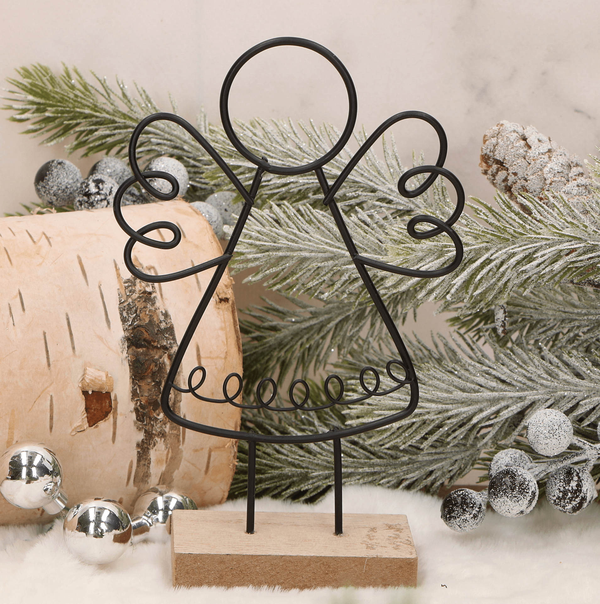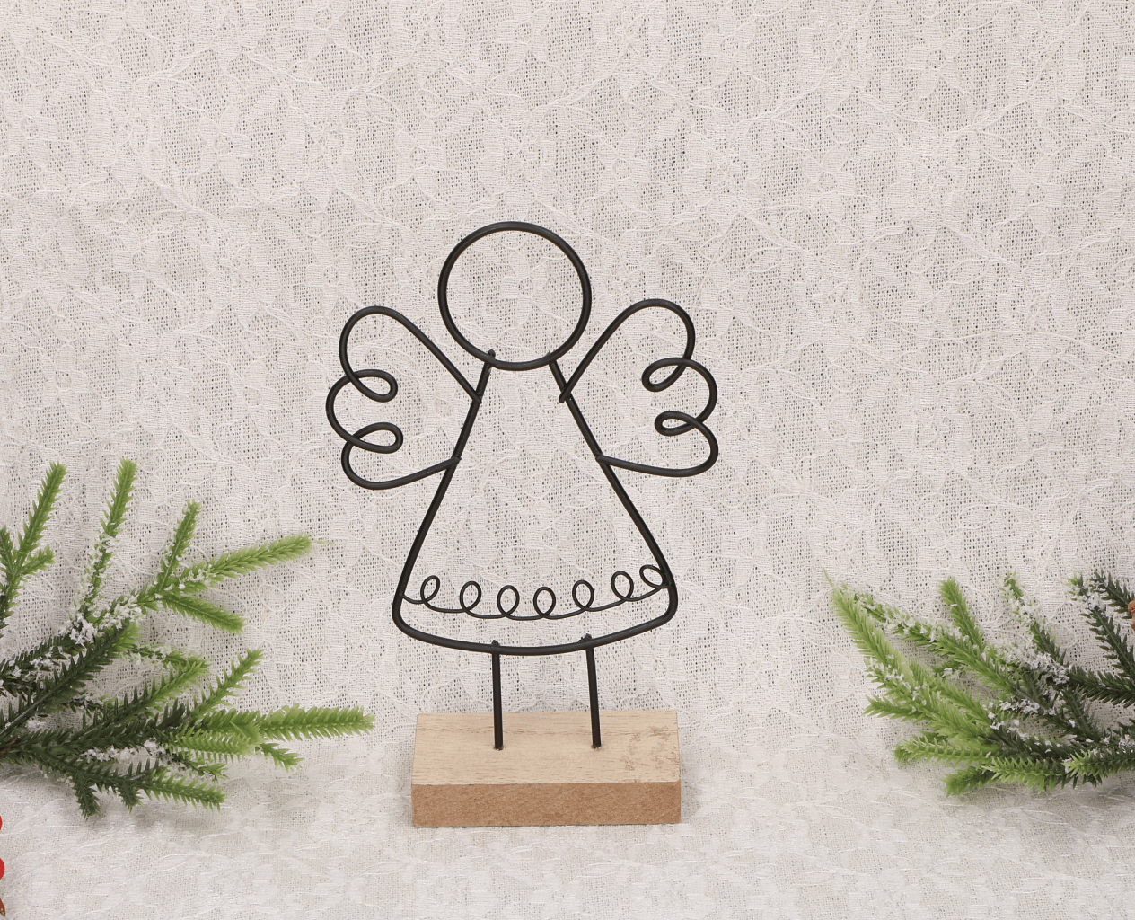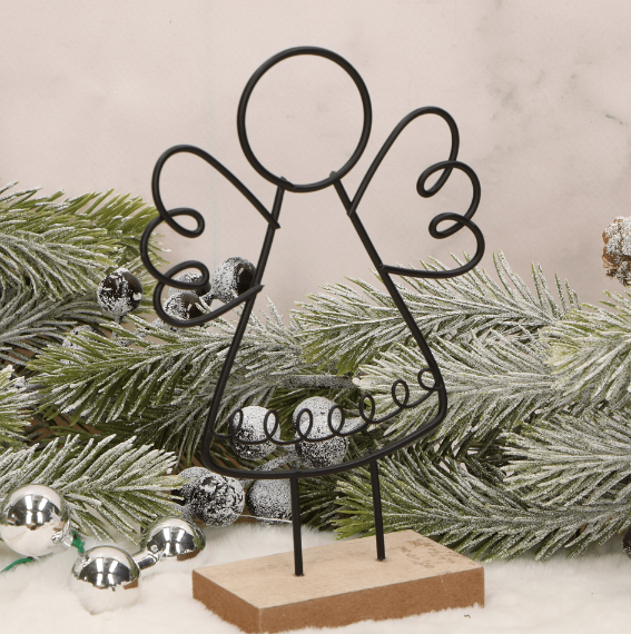 Dekoracja świąteczna żelazny anioł 16 x 10 x 4 cm – minimalistyczna ozdoba stojąca na drewnianej podstawce
