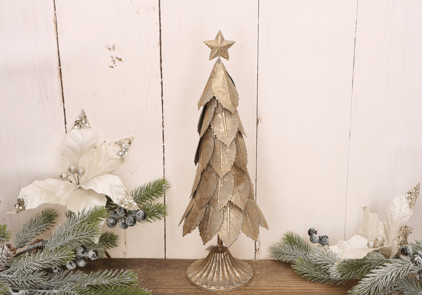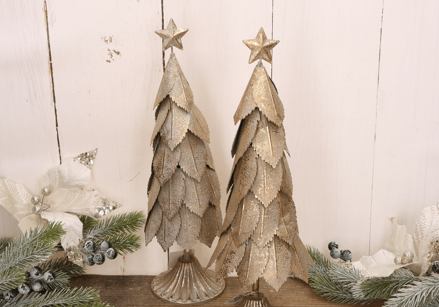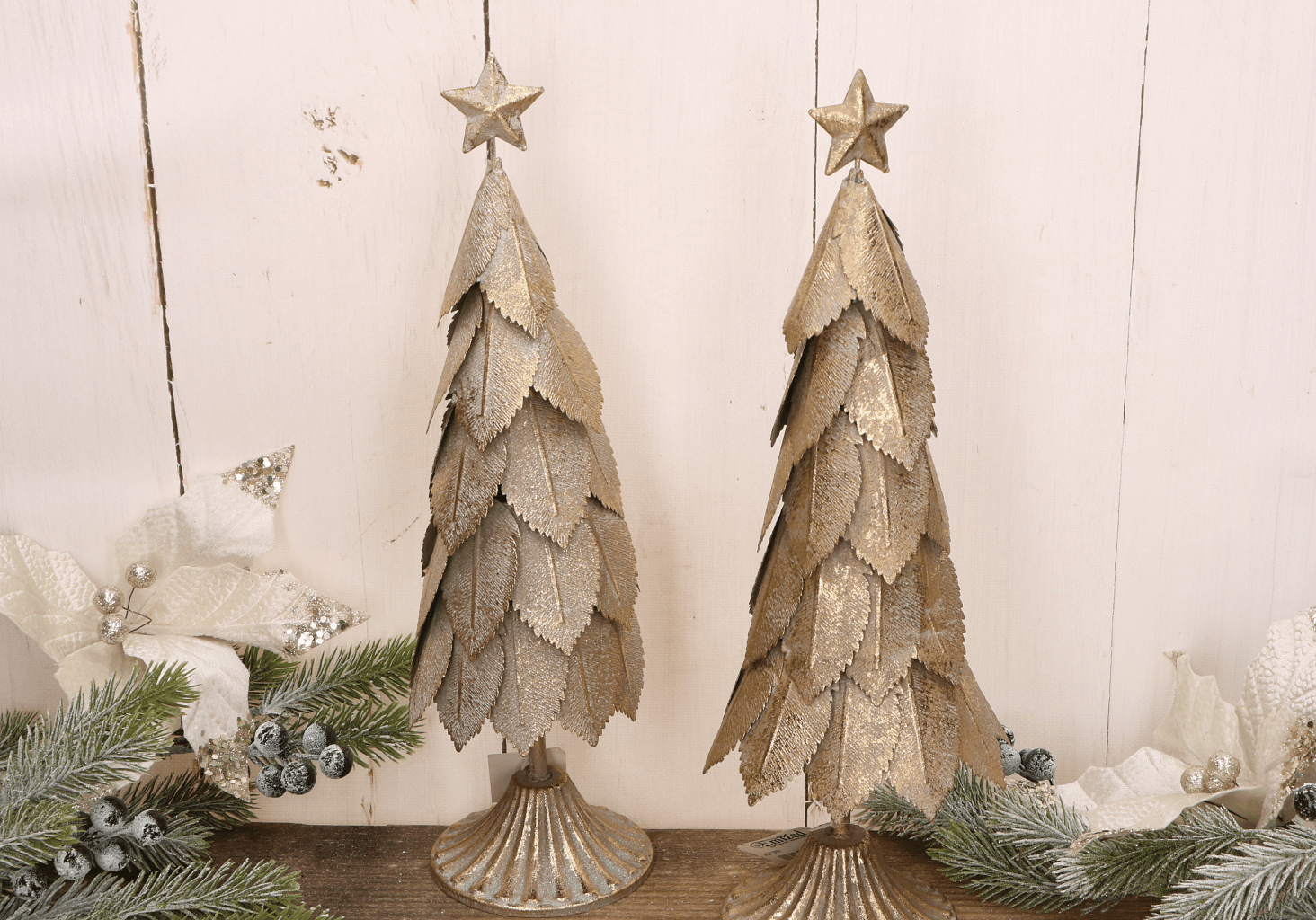 Elegancka świąteczna choinka wykonana z metalu w kolorze złotym to wyjątkowa ozdoba, która doda blasku i uroku każdemu wnętrzu. Jej warstwowy design przypominający liście, połączony z postarzaną złotą powierzchnią, nadaje dekoracji wyjątkowego charakteru. Na szczycie znajduje się ozdobna gwiazda, która dodatkowo podkreśla świąteczny klimat. Choinka świetnie sprawdzi się jako dekoracja na stół, kominek lub parapet, wprowadzając ciepłą i przytulną atmosferę. Dzięki solidnej metalowej konstrukcji jest trwała i stabilna.