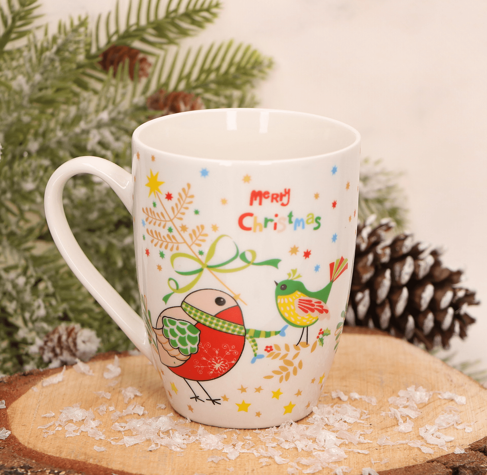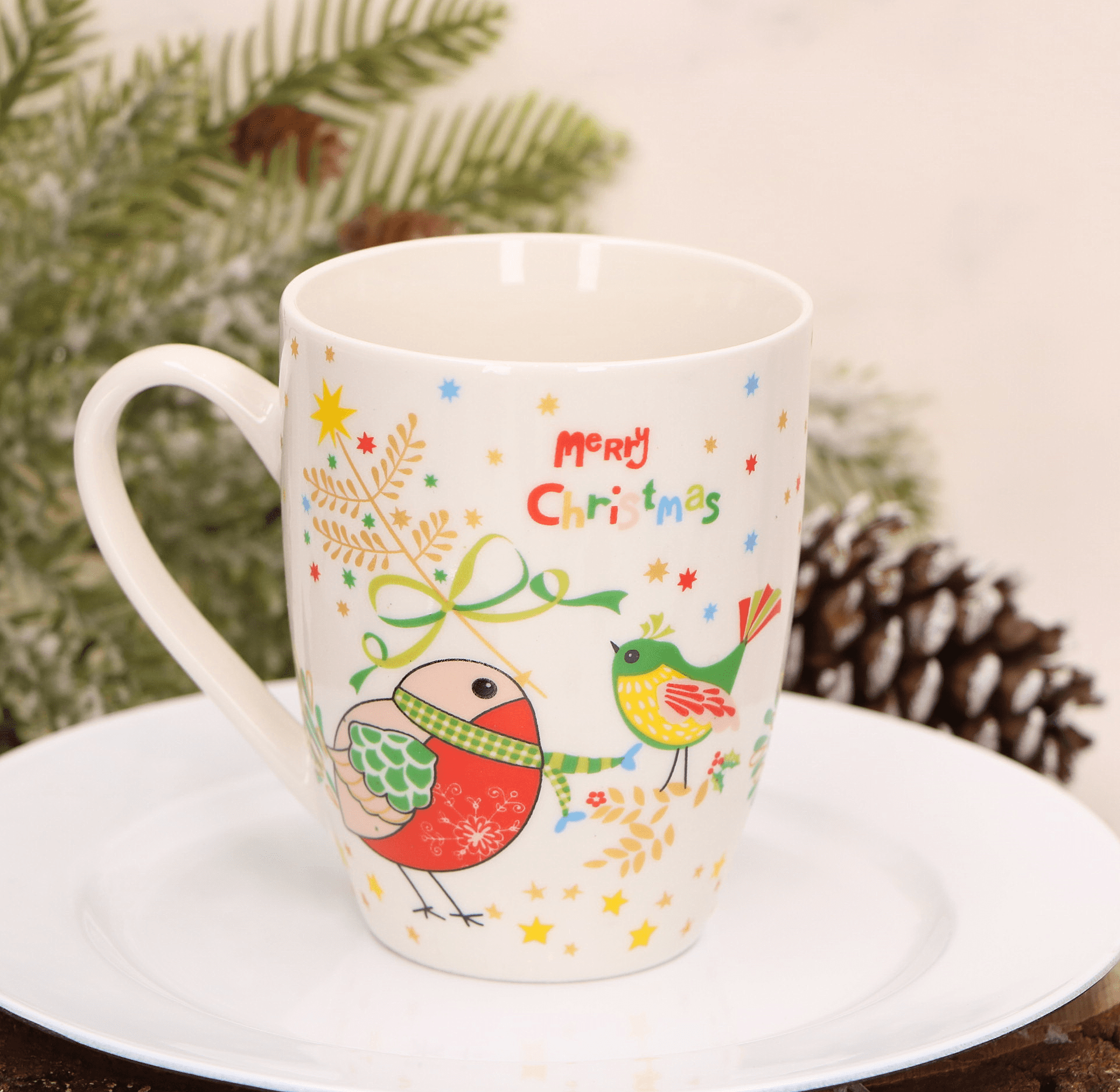 Kubek ceramiczny z uroczym, świątecznym wzorem to idealny dodatek na zimowe wieczory. Wzór z ptaszkami oraz kolorowym napisem "Merry Christmas" nadaje kubkowi radosny i przytulny charakter, który wprowadzi świąteczny nastrój do Twojego domu. Wykonany z wysokiej jakości ceramiki, jest trwały oraz przyjemny w użytkowaniu. Świetnie sprawdzi się jako prezent dla bliskiej osoby, szczególnie w okresie Bożego Narodzenia, tworząc przyjemne wspomnienia. Kubek pomieści ulubioną herbatę, kawę lub gorącą czekoladę, sprawiając, że każda chwila relaksu będzie jeszcze bardziej wyjątkowa.