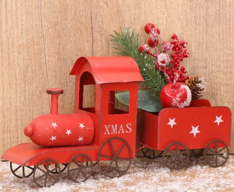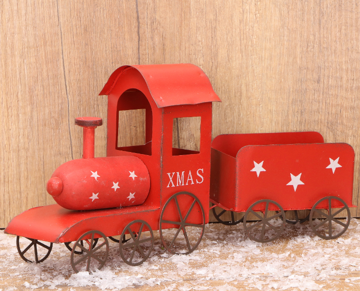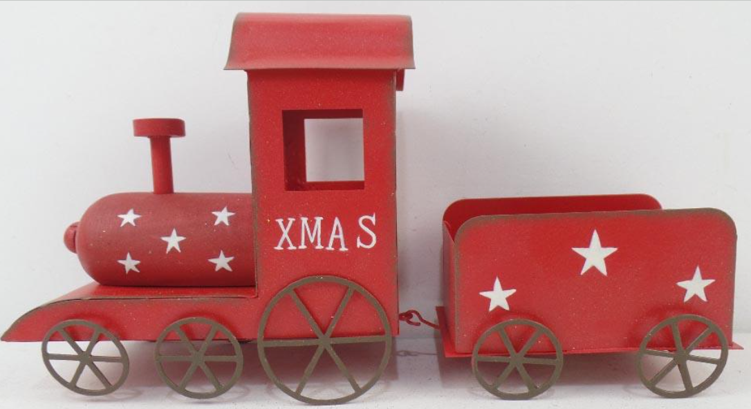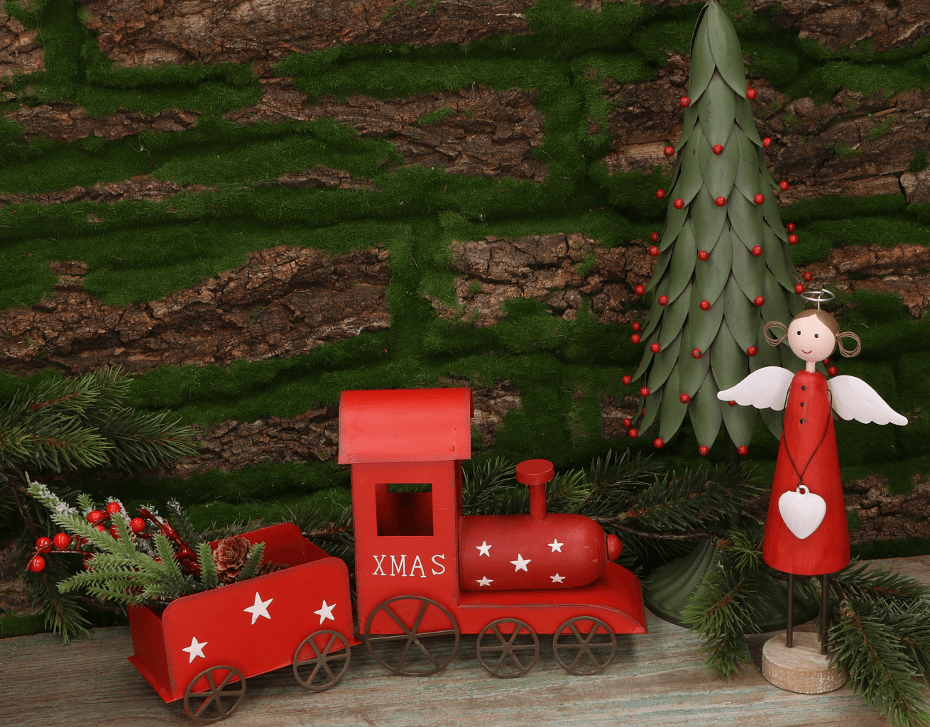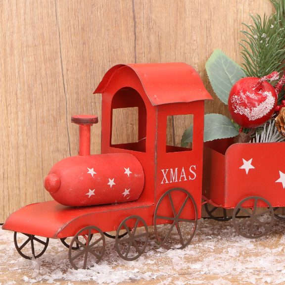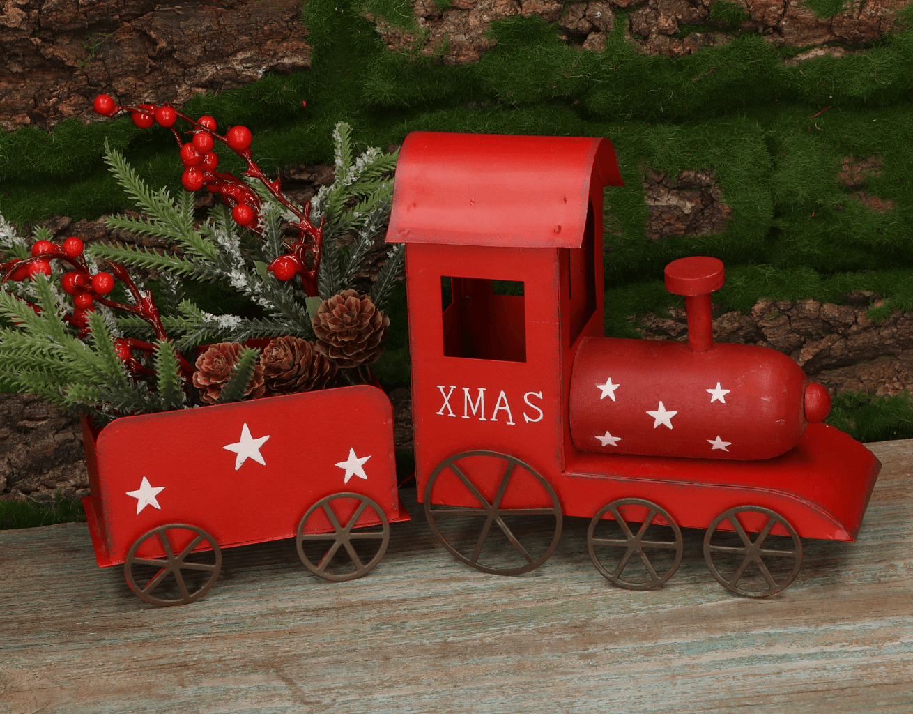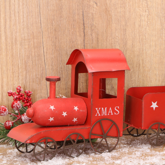 Świąteczny metalowy pociąg dekoracyjny XMAS – czerwony