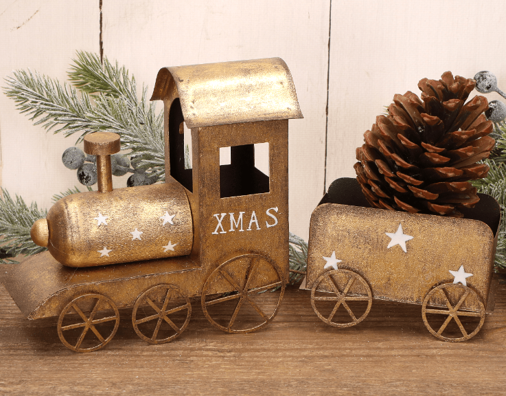 Świąteczny metalowy pociąg dekoracyjny XMAS