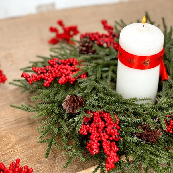 Czerwone jagody i naturalne szyszki dodają świątecznego uroku