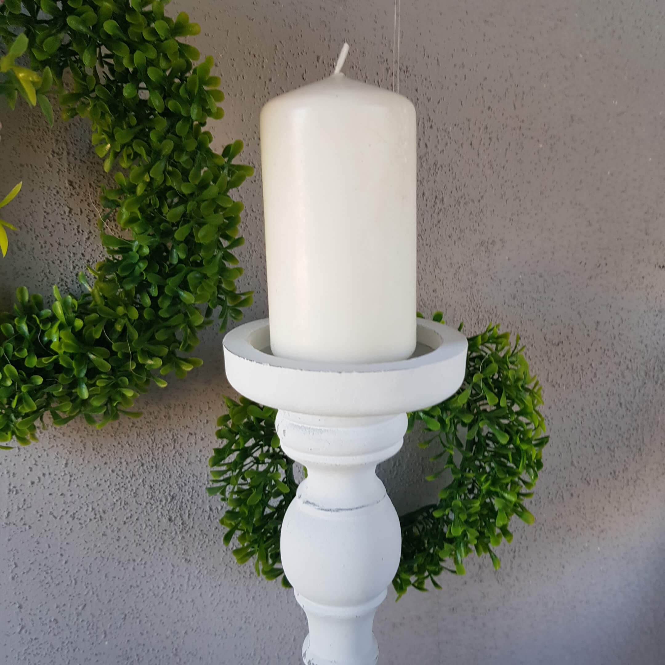 Świecznik Kolumna drewniany na świeczkę biały 37cm