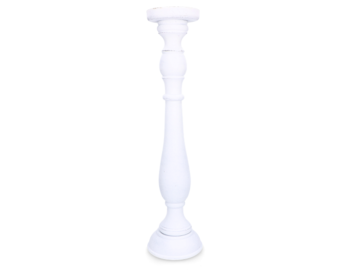 Świecznik Kolumna drewniany na świeczkę biały 47cm