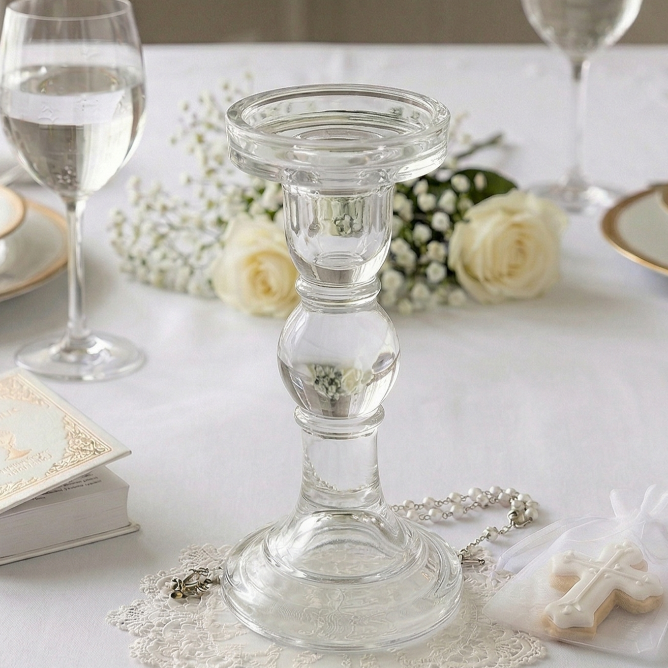 Szklany Świecznik to ponadczasowy dodatek, który wprowadzi do Twojego domu elegancję i subtelny blask. Stworzony z przezroczystego szkła, o wysokości 14cm i szerokości 8,5cm, będzie idealnym uzupełnieniem każdej aranżacji. Świecznik charakteryzuje się klasycznym designem, dzięki czemu doskonale komponuje się z różnorodnymi stylami wnętrz, od tradycyjnych po nowoczesne. Przejrzystość materiału pięknie rozprasza światło świecy, tworząc magiczną atmosferę w każdym pomieszczeniu. To także wspaniały pomysł na prezent dla bliskich, który będzie świadczyć o Twoim wyrafinowanym guście.