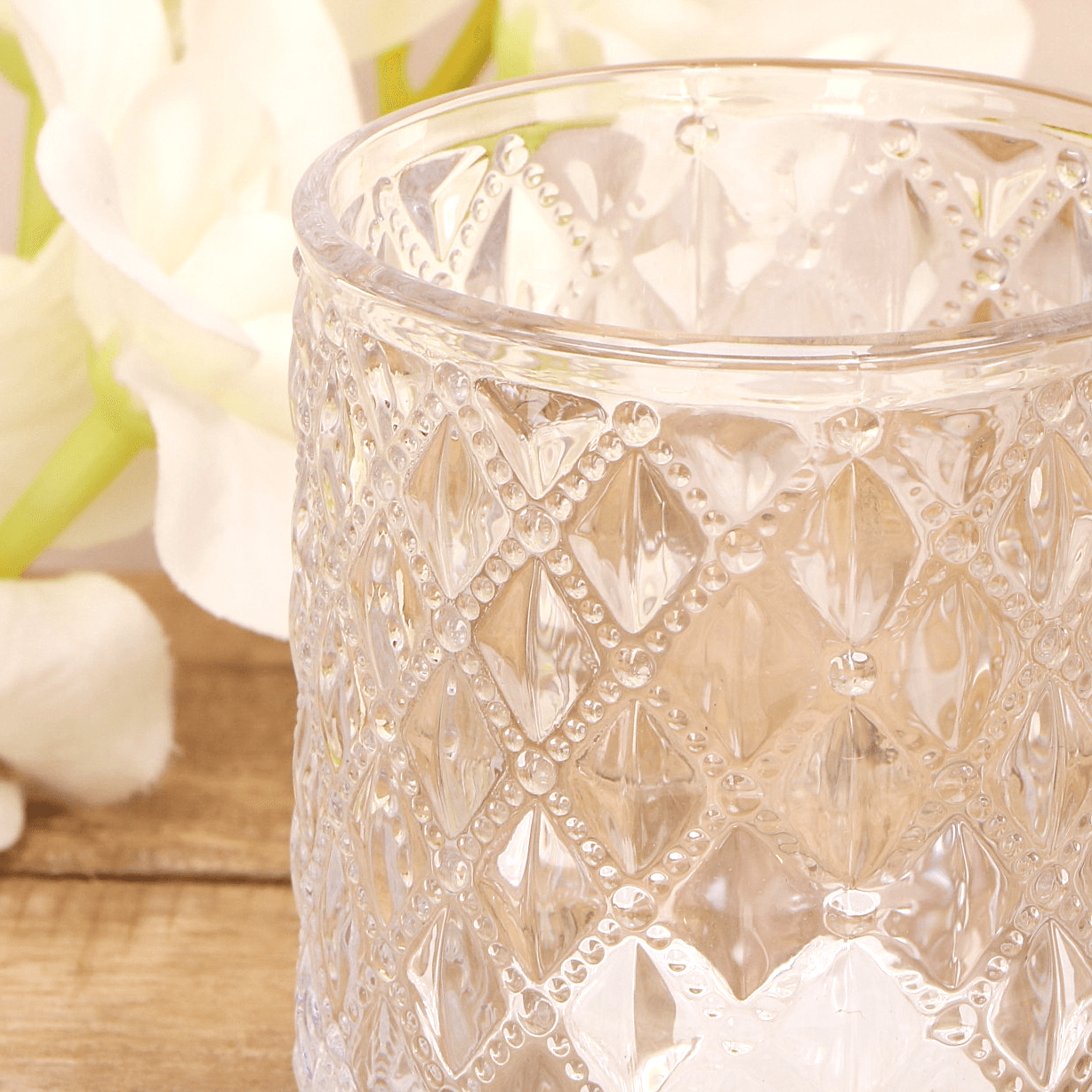 Ten elegancki szklany świecznik to połączenie klasyki i nowoczesności, które doda blasku każdemu wnętrzu. Jego bogaty wzór sprawia, że światło świecy pięknie się załamuje, tworząc niepowtarzalną grę świateł i cieni. Idealnie sprawdzi się podczas romantycznej kolacji, relaksującej kąpieli czy jako element dekoracyjny na co dzień. Przejrzyste szkło i precyzyjne szlifowanie to gwarancja, że świecznik będzie wyglądał stylowo na każdym stole.