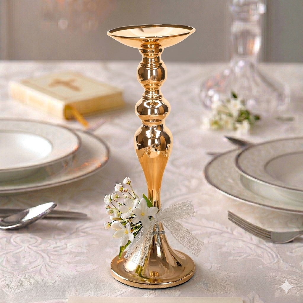 Szykowny Złoty Świecznik 13x35 cm
