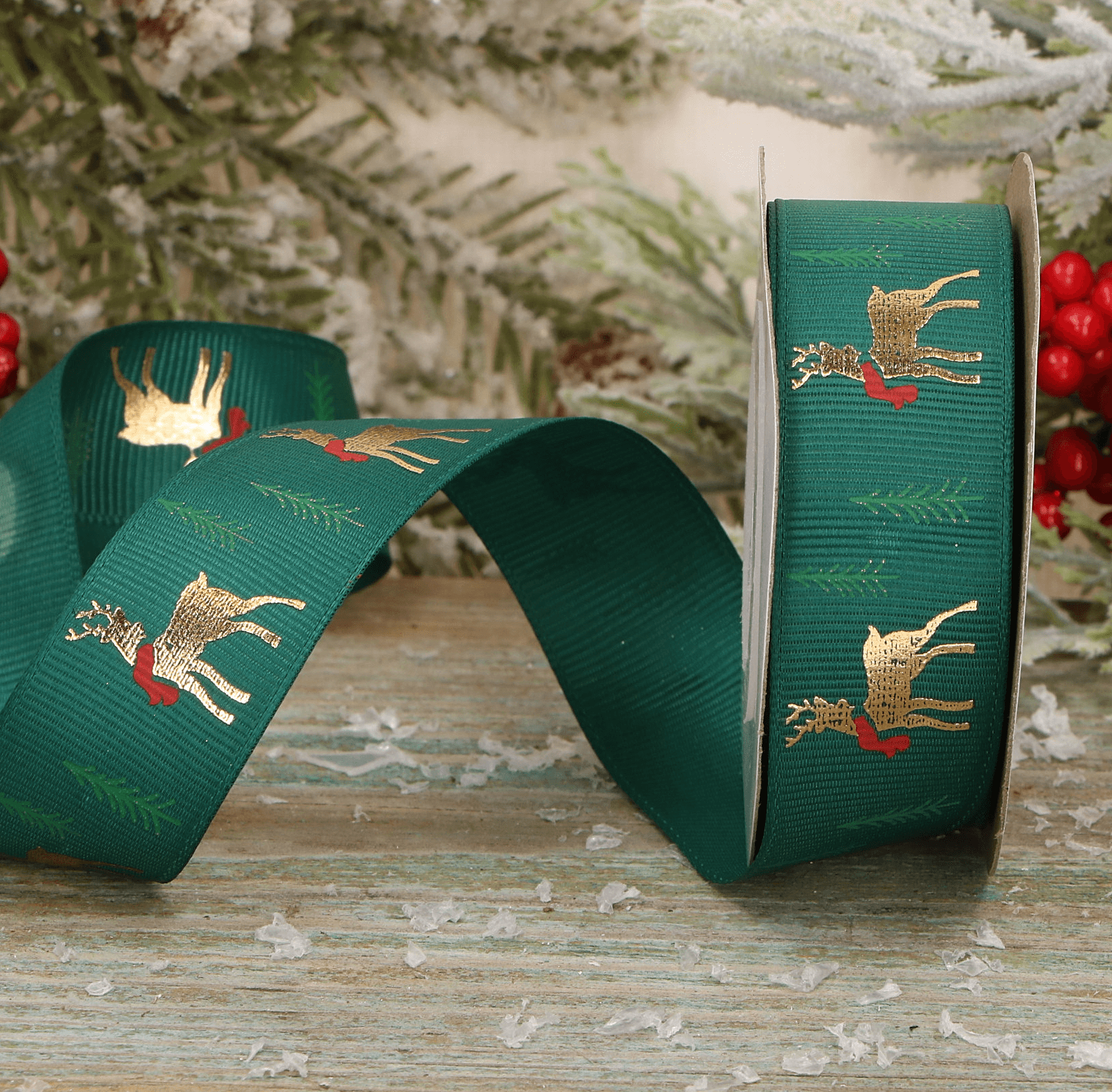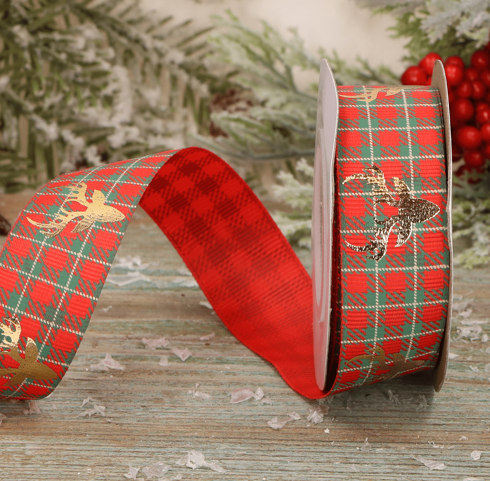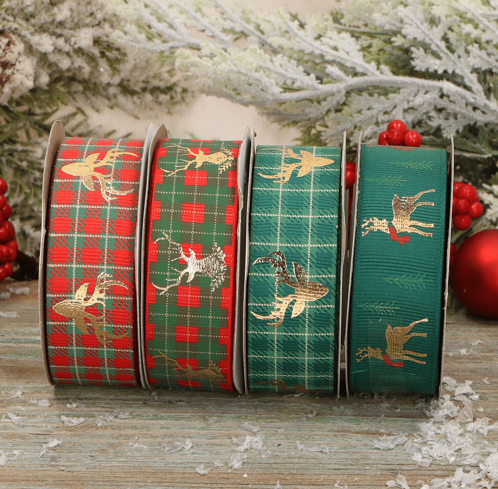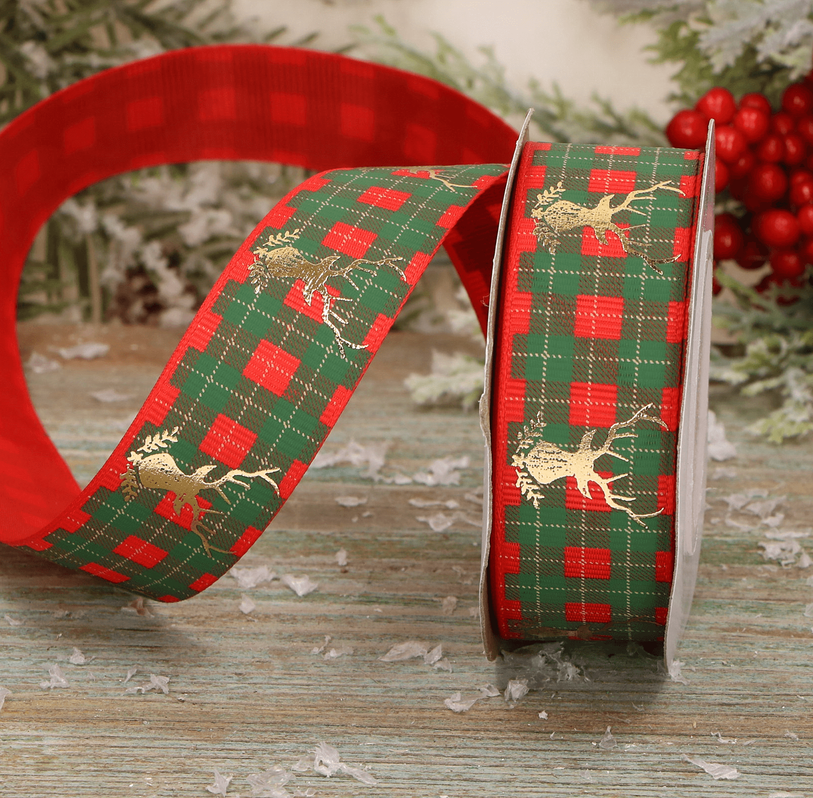 Świąteczna wstążka z reniferem 2,5 cm – idealna do pakowania prezentów i bożonarodzeniowych dekoracji