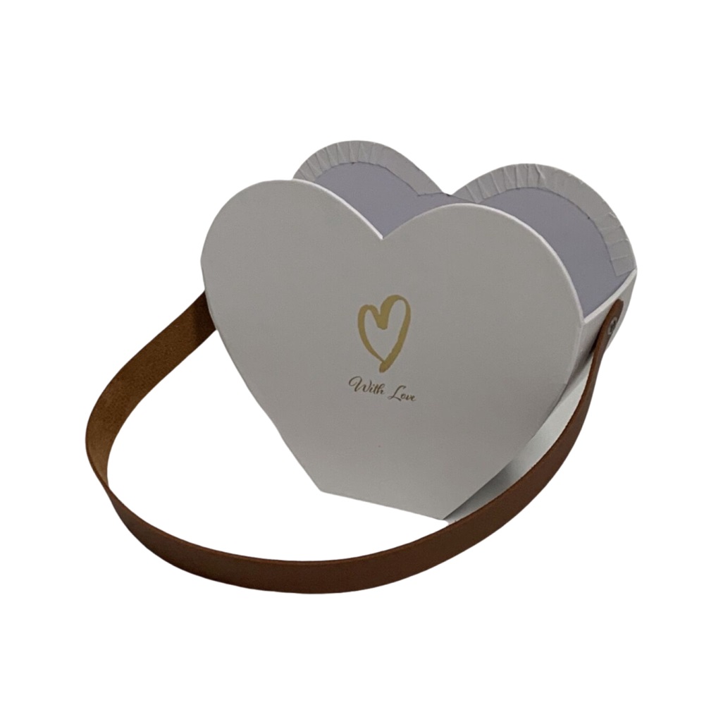 Papierowa torebka pudełko w kształcie serca – białe opakowanie z uchwytem 19,5 x 14,5 x 8 cm