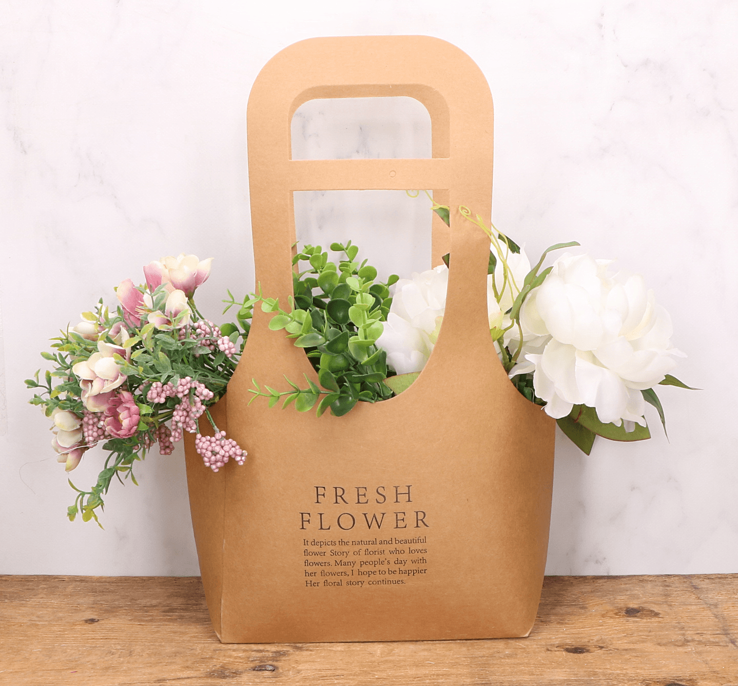 - Solidna konstrukcja torebki zapewnia ochronę kwiatów podczas transportu.