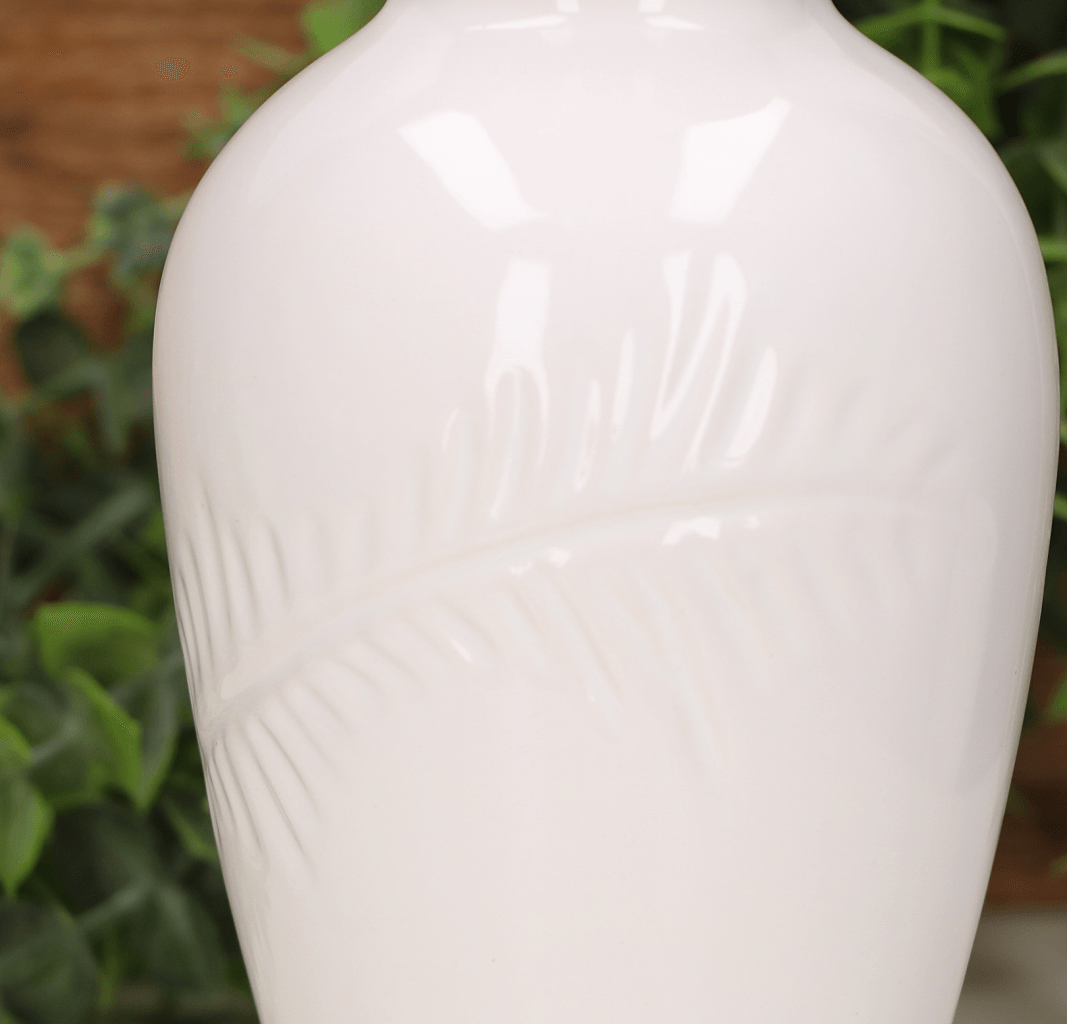 Wazon z gałązką średni biały szkliwiony 21cm
