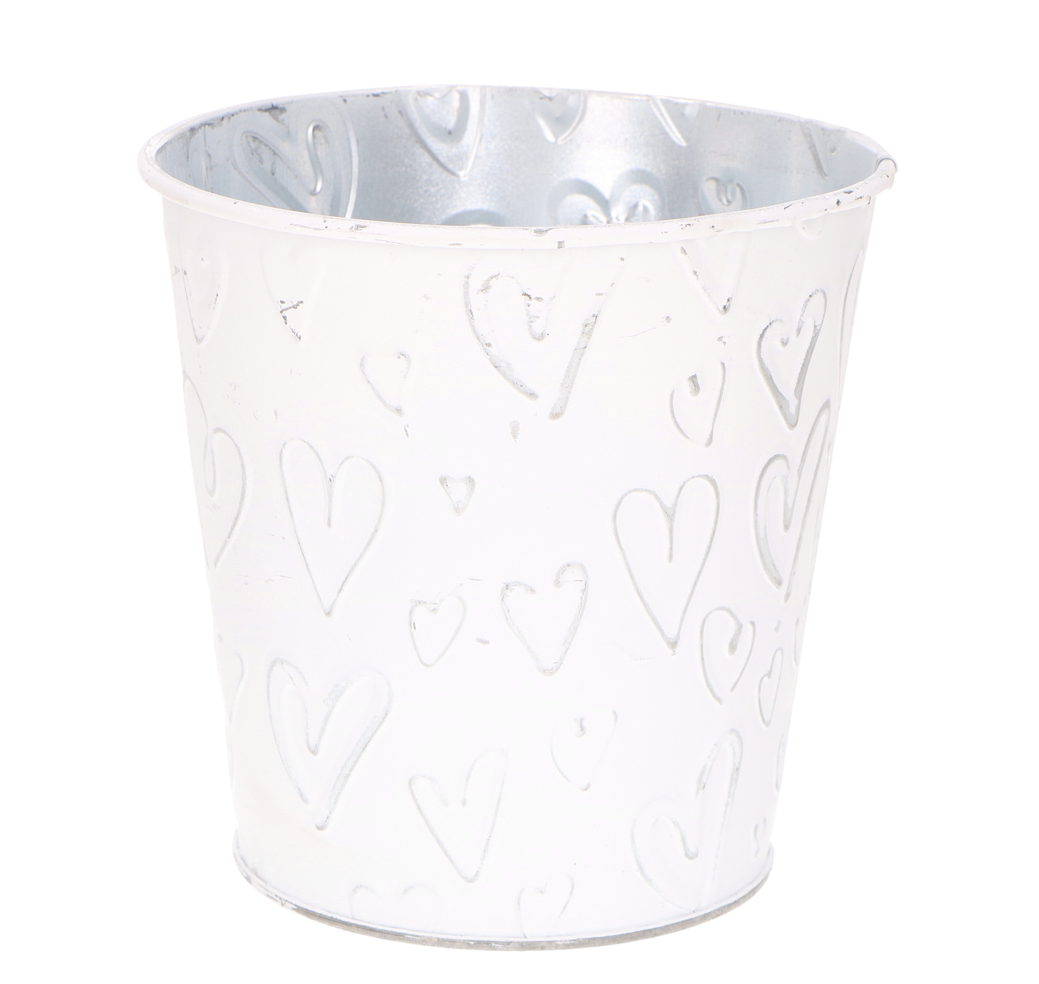 Wiaderko metalowe z sercami białe dekoracja 12cm