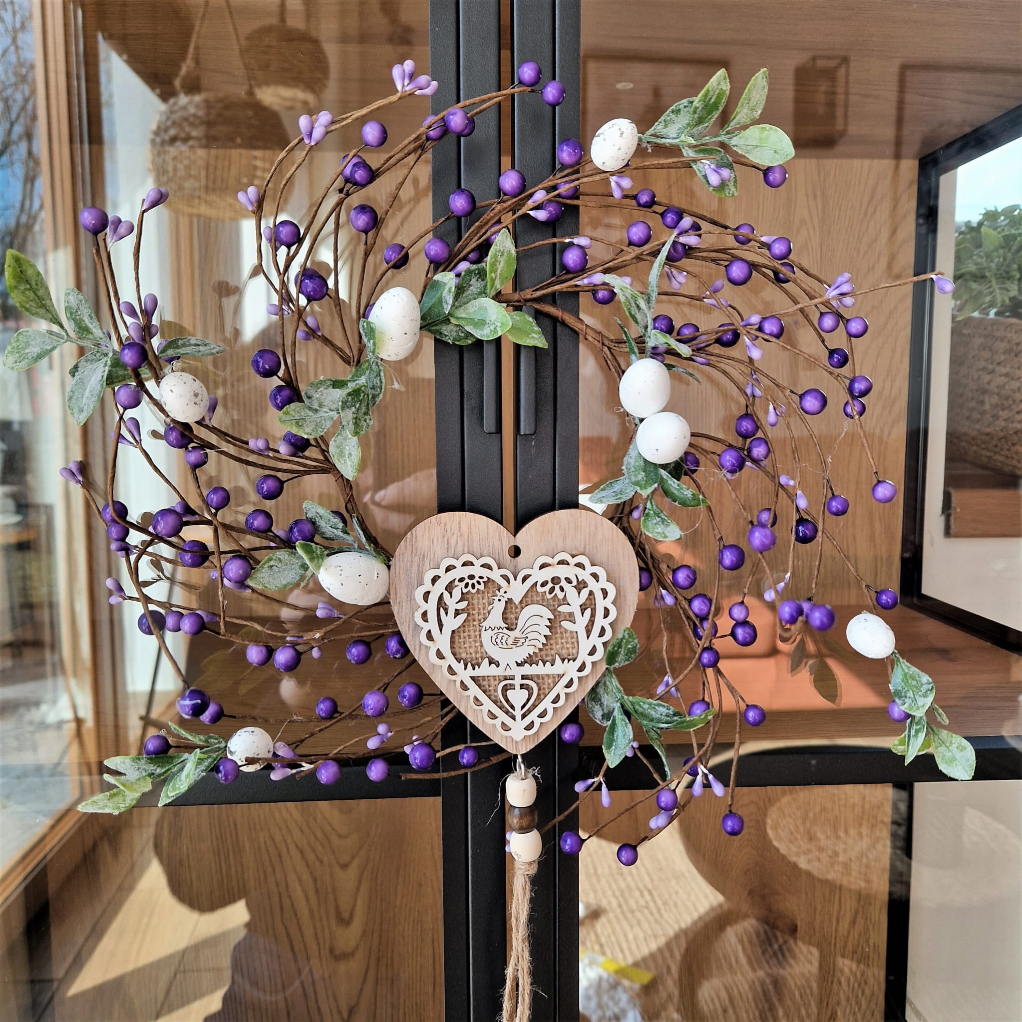 Wianek kreatywny z fioletowymi kuleczkami DIY 13cm