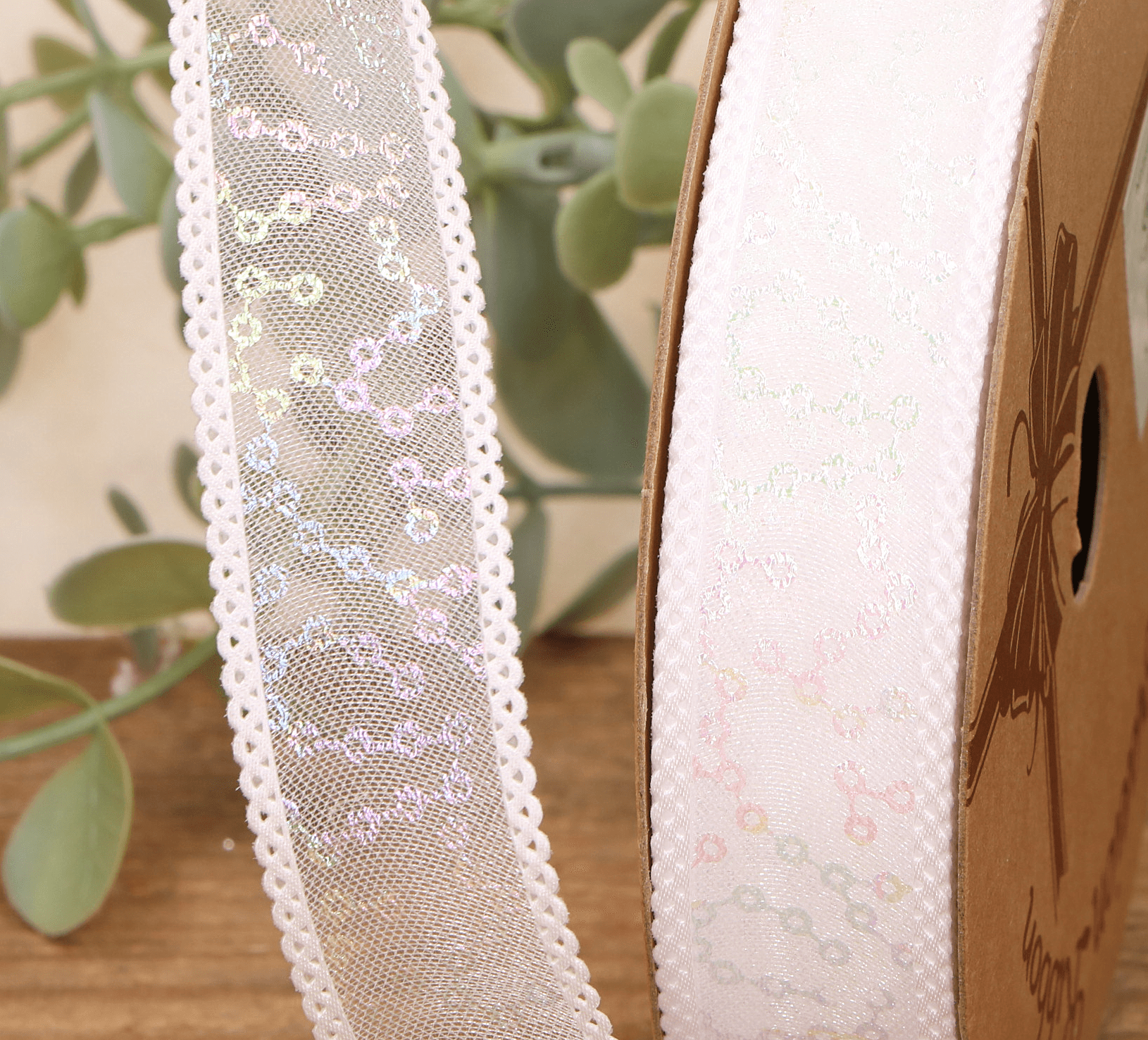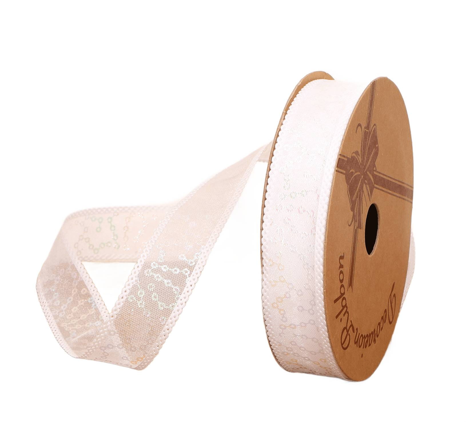 Wstążka komunijna biała ze srebrną nitką 2,5cm