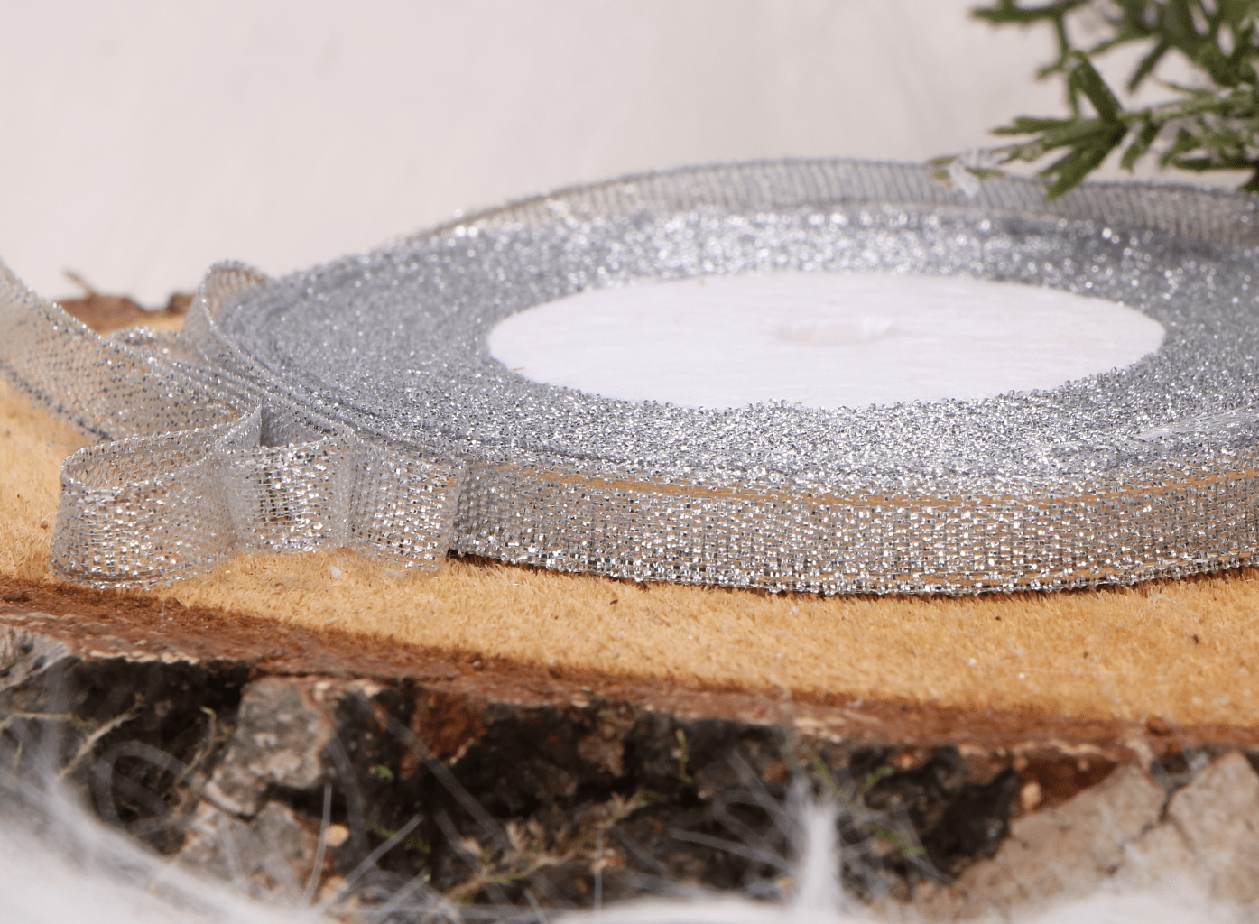 Wstążka brokatowa 6mm srebrna