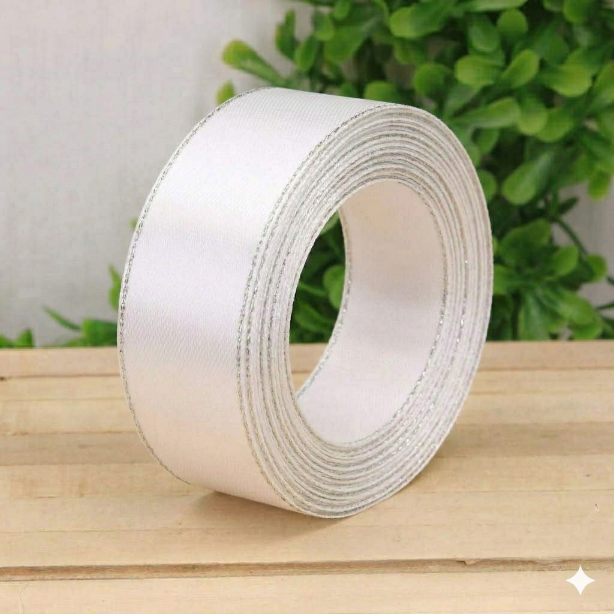 Wstążka komunijna biała ze srebrną nitką 2,5cm