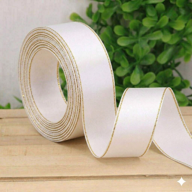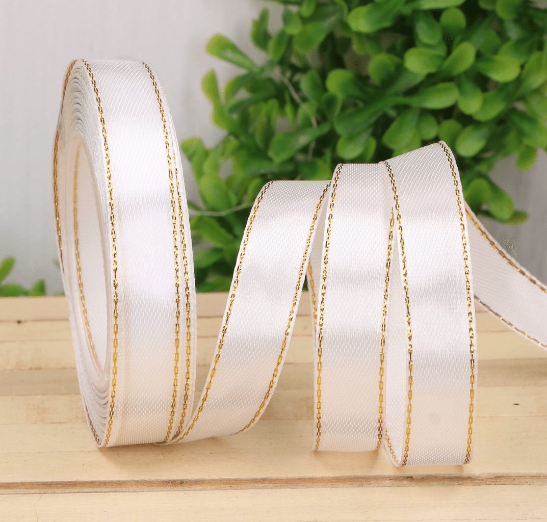 Wstążka komunijna biała ze złotą nitką 2,5cm