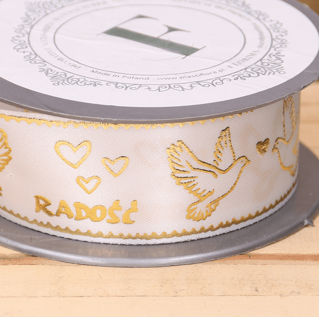 Wstążka komunijna biała ze złotą nitką 2,5cm