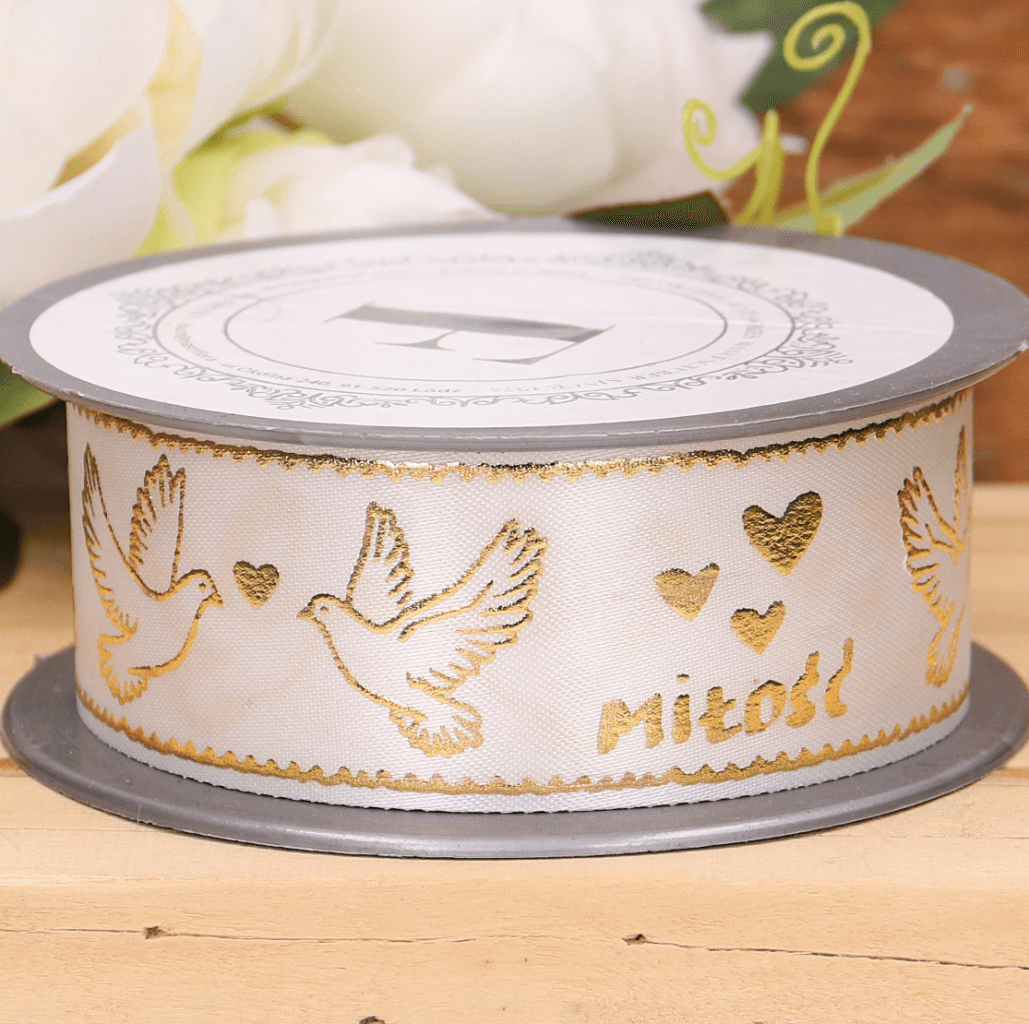 Wstążka ślubna biała 3,8cm 10m