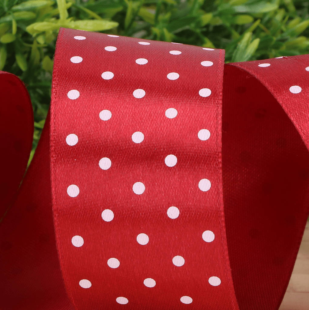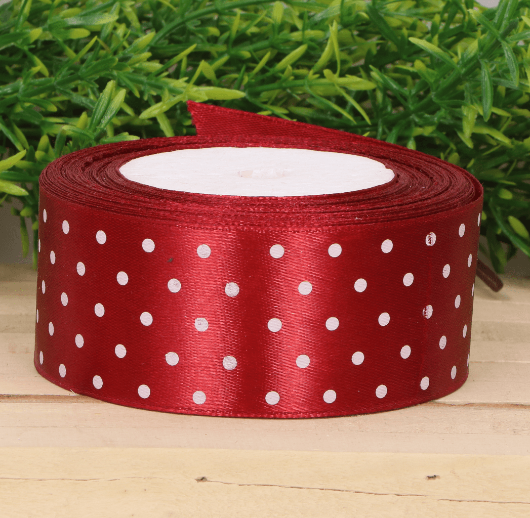 Wstążka w kropki atłasowa bordowy 4cm x 23m