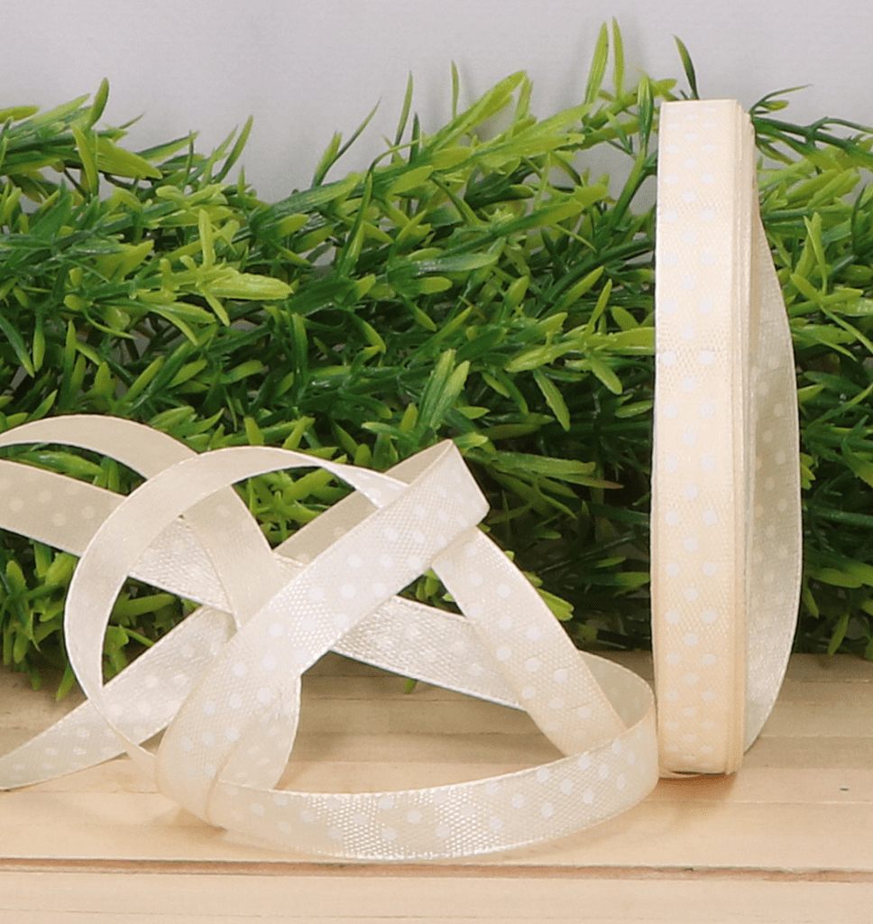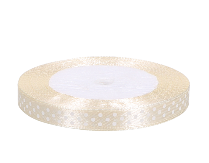 Wstążka w kropki atłasowa kremowa 1cm x 23 m