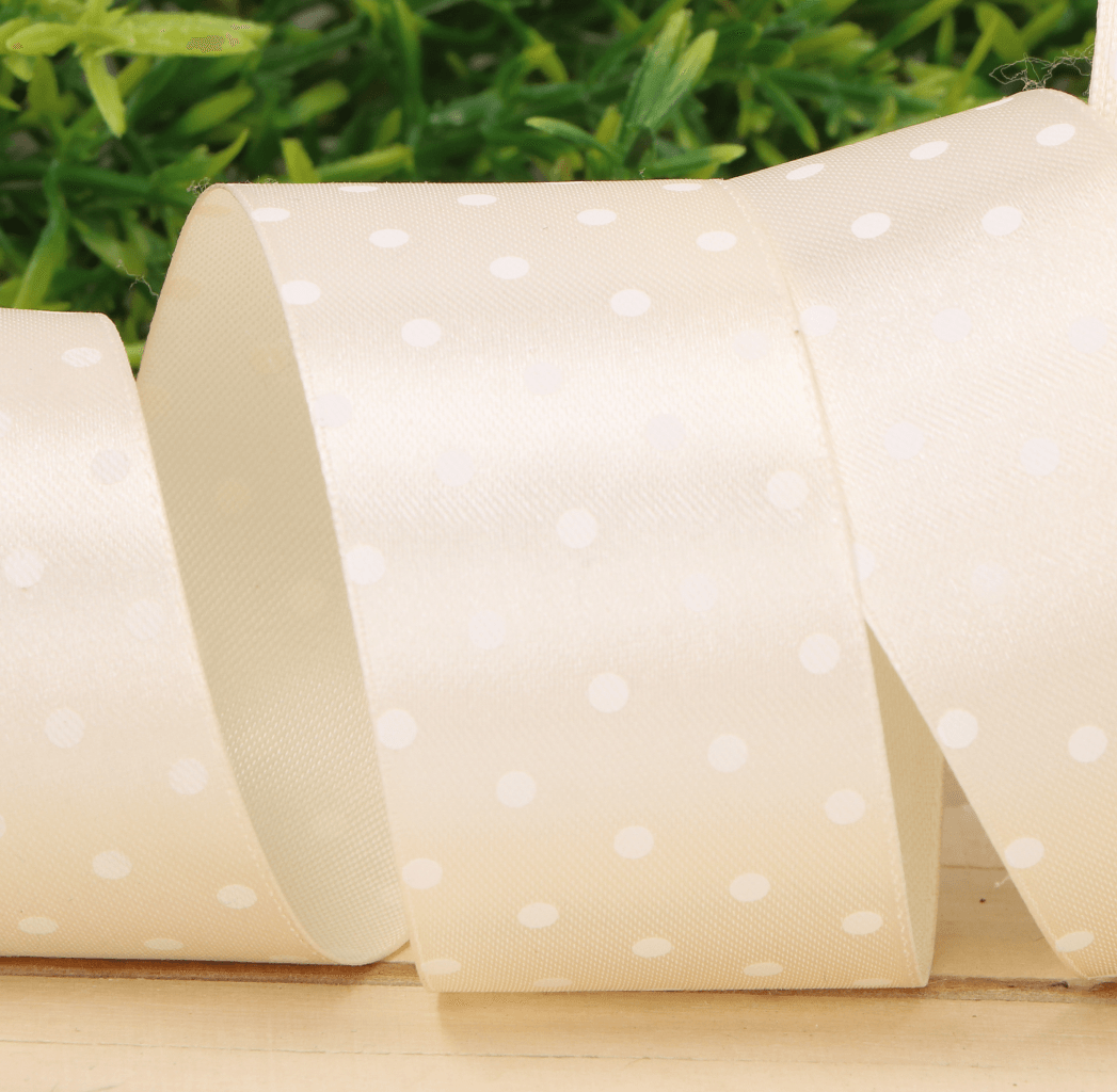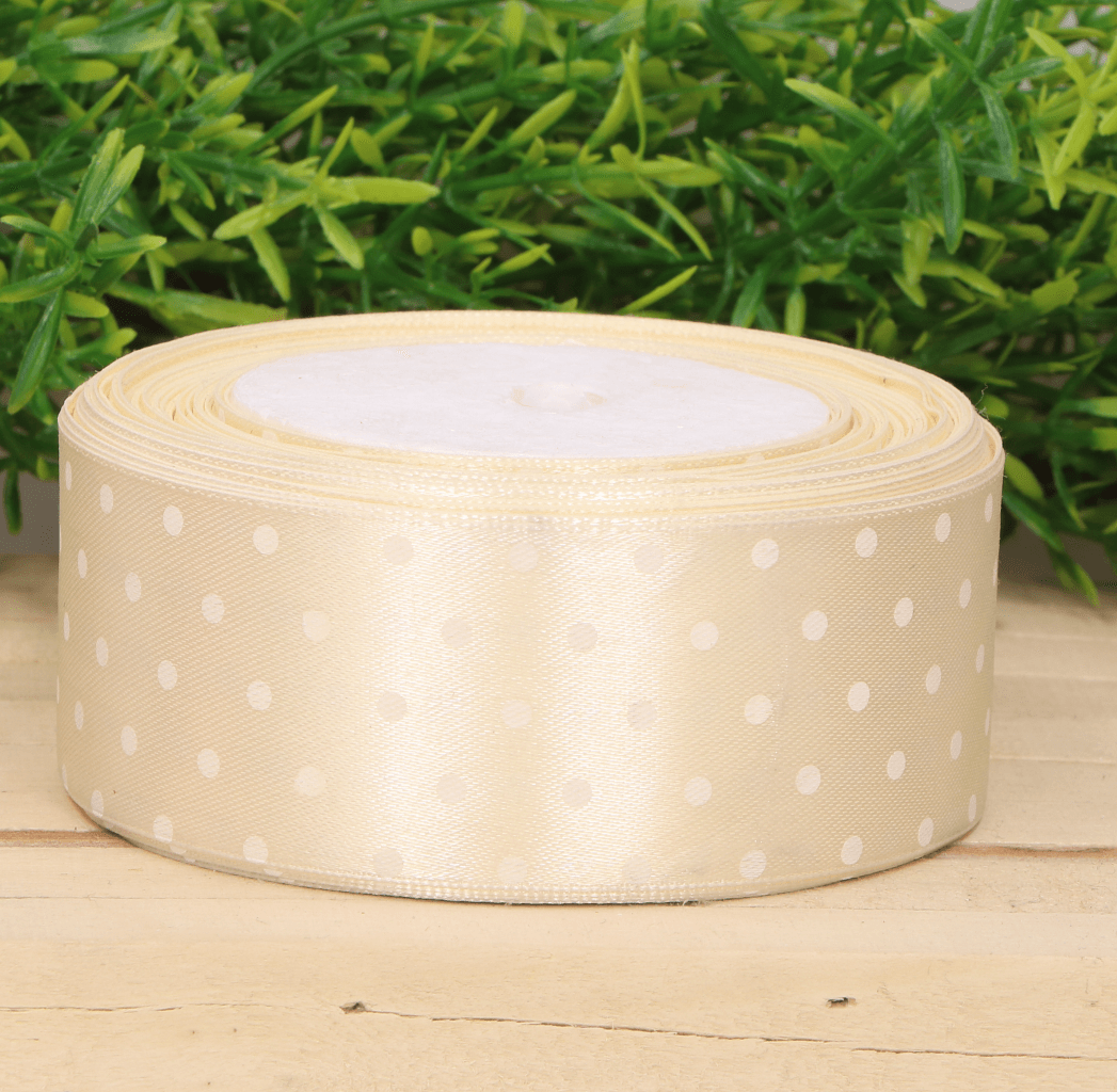 Wstążka w kropki atłasowa kremowy 4cm x 23m